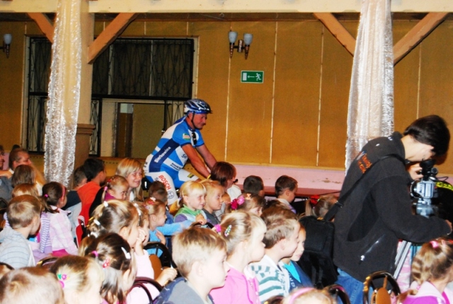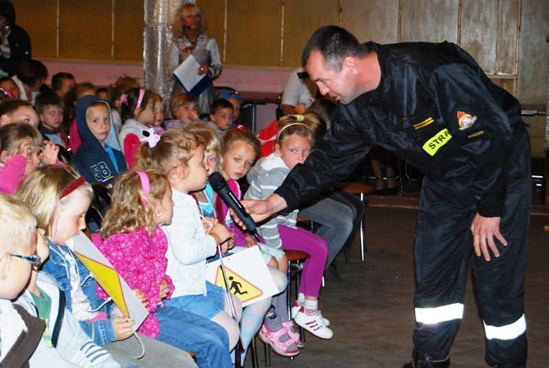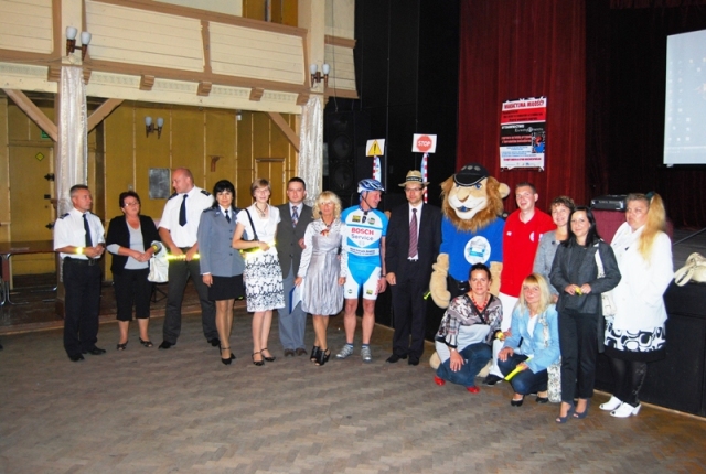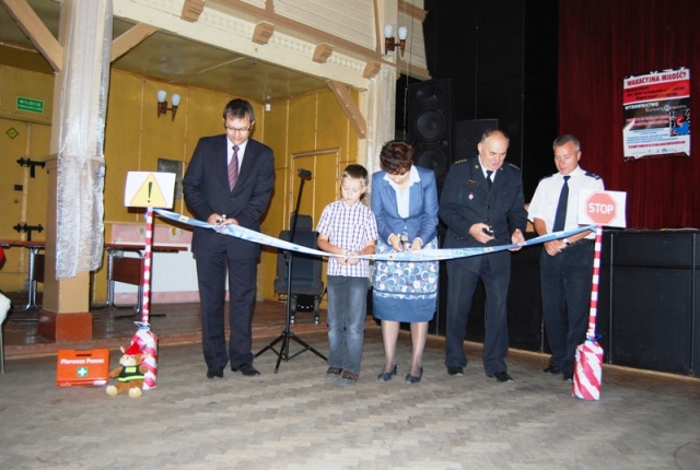 Okolicznościowego przecięcia wstęgi dokonali Sekretarz Gminy Kłodzko Bożena Simlat, inspektor Krzysztof Kulak z Komendy Powiatowej Policji, zastępca komendanta Powiatowej Państwowej Straży Pożarnej st. kpt. Ryszard Lewandowski, dyrektor Departamentu Obszarów Wiejskich i Rolnictwa Urzędu Marszałkowskiego Województwa Dolnośląskiego – Bogusław Wijatyk oraz przedstawiciel dzieci – Michał Adamczyk z klasy trzeciej. Dodatkową atrakcją był Pan Władysław Nowicki, który przyjechał do Ołdrzychowic na prawdziwej kolarzówce i opowiadał o swojej sportowej pasji. Jako pierwszy do dzieci przemówił dzielnicowy Emil Kowalski i mówił o odblaskach, chodzeniu lewą stroną szosy, sygnalizacji świetlnej i przejściach dla pieszych. W roli drugiej wystąpiła sympatyczna nadkomisarz Wioletta Martuszewska. Opowiadała o właściwych zachowaniach podczas zabawy, jazdy na rowerze, w okresie zimy, na kąpielisku. Kategorycznie odradzała ufać obcym i pokazała jaką postawę należy zachować, gdy nas zaatakuje pies. Dzieci bardzo aktywnie współpracowały. Swoje 5 minut miał także strażak w osobie gminnego komendanta OSP Marcina Olejnika. Ogień palił się na ekranie, na buziach dzieci i podczas penetrowania bojowego wozu strażackiego. Było o unikaniu ognia i efektach kontaktu z prądem elektrycznym. Podczas rozmowy z ratownikiem medycznym Piotrem Nieckarzem krew się nie polała, ale było groźnie. Dzieci miały piekące przygody z oparzeniami pokrzywami, papierosami… Przechodziły podwójne krwotoki z nosa. Skaleczenia też się zdarzały. Ratownik przepytywał, zalecał i chwalił tych, którzy wykazali się wiedzą nt. numerów alarmowych w Polsce. W zaciszu biblioteki uczniowie pracowali nad tematycznymi kartami pracy, z którymi poradzili sobie znakomicie.