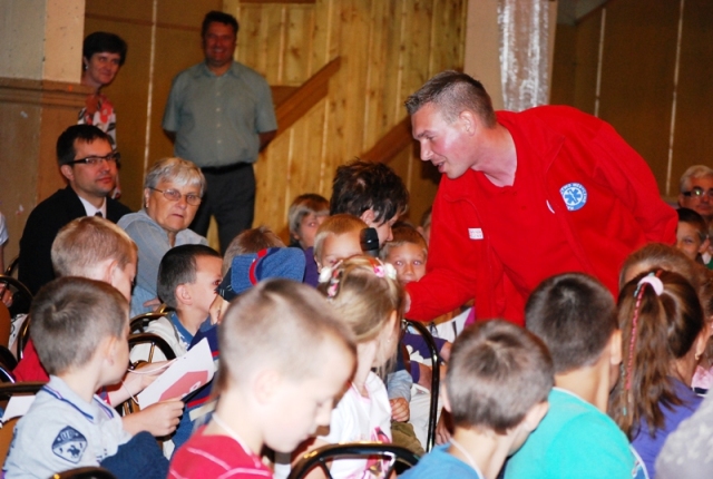 Na zakończenie spotkania dyrektor Biblioteki Publicznej Gminy Kłodzko Mariola Huzar przeczytała pouczającą bajkę o tym, jak należy poruszać się na skrzyżowaniach i dzieci zdały egzamin celująco. Nasz gość - Bogusław Wijatyk zabezpieczył każdego młodego i dorosłego Polaka w bezpieczne odblaski, które świeciły niemal na każdym zdjęciu… Zdradzimy jeszcze, że w roli komisarza Lwa wystąpił wolontariusz Bartek Bloch z Żelazna.