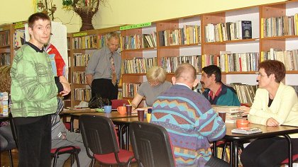 Wizyty te stały się już tradycją, a jak twierdzą panie opiekunki: Joanna Michalak i Agnieszka Merczyńska, oczekiwane są przez mieszkańców DPS z niecierpliwością. Podczas spotkań bibliotecznych każdy z uczestników może znaleźć coś dla siebie zgodnie z zainteresowaniami. Wśród gości z Podzamka są czytelnicy książek i czasopism, miłośnicy geografii z zapałem studiujący mapy i przewodniki turystyczne. Są uzdolnieni plastycznie, którzy wykonują swoje piękne prace oraz chętni do korzystania Internetu. Zajęcia biblioteczne przebiegają w miłej atmosferze, której dopełnieniem są przyjacielskie rozmowy przy kawie.