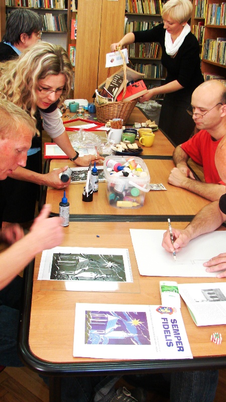 6 października biblioteka centralna zamieniła się w pracownię plastyczną. Nasi przyjaciele mogli wyrazić swoje talenty i emocje na papierze i szkle. Tematem przewodnim stały się dwa konkursy ogłoszone przez dwie instytucje kultury tj. biblioteki publiczne w Ołdrzychowicach Kłodzkich i Zbąszyniu. Wybierano pomiędzy tematami „Urokliwa kraina gołębi rasowych i drobiu ozdobnego”, a „Moje spotkanie z zabytkami Kresów Wschodnich”.