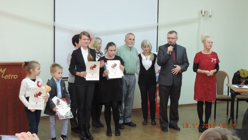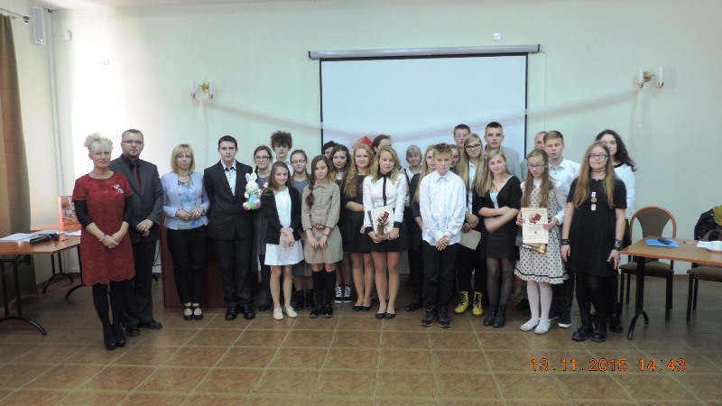 1 miejsce i statuetka Listopadowego Liścia dla Anny Zaremby z Niepublicznego Gimnazjum w Żelaźnie, za autorski utwór „Refleksje przy kubku herbaty”