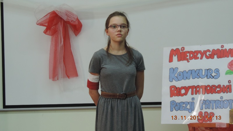 3 miejsce dla Pawła Żwirełło ze Szkoły Podstawowej w Krosnowicach, za „Pieśń o żołnierzach z Westerplatte” Konstantego, Ildefonsa Gałczyńskiego