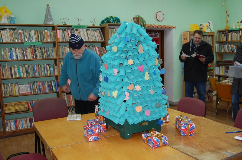 SPECJALNE WYRÓŻNIENIE OTRZYMUJE BIBLIOTEKA W STARYM WIELISŁAWIU ZA ORYGINALNĄ CHOINKĘ WYKONANĄ Z TEKTUROWYCH ROLEK OD PAPIERU TOALETOWEGO