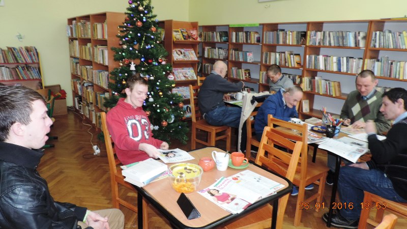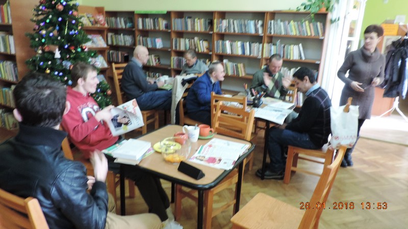 Uczestnikami zajęć są kobiety i mężczyźni z Domu Pomocy Społecznej w Podzamku, od kilku miesięcy pod skrzydłami pani opiekunki Bożeny S. Celem zajęć jest pomoc w rozwiązywaniu problemów, jakie niesie codzienne życie, poprzez zajęcia z literaturą, kreatywne zajęcia artystyczne oraz rozwijanie pasji i zainteresowań osobistych uczestników – podkreśla pani Mariola Huzar, dyrektor Biblioteki.