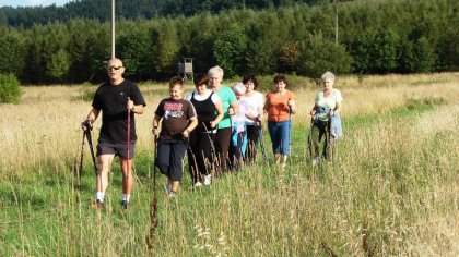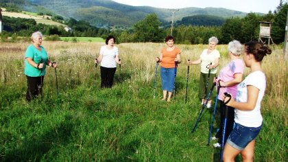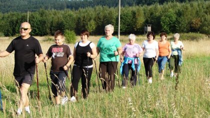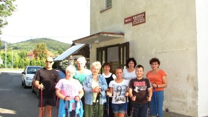 Nordic Walking to jeden z nowszych sportów, który przyczynił się do integracji trzech pokoleń mieszkańców w tej wsi. Pomysł podjęcia przez nich innego rodzaju aktywności społecznej zrodził się w bibliotece podczas majowego tygodnia bibliotek. Na czym polega Nordic Walking? Jest to połączenie marszu z techniką odpychania się od podłoża za pomocą specjalnie zaprojektowanych kijków, podobnych do kijków biegowych, ale to nie to samo. Ta forma rekreacji zdrowotnej została wymyślona przez naukowców z Fińskiego Instytutu Sportu w Lahti, jako uzupełnienie letnich ćwiczeń fińskich biegaczy narciarskich. „To dobry sposób na poprawę kondycji fizycznej oraz osiągnięcie korzyści zdrowotnych. Najważniejszy jest dobry trening i poznanie właściwej techniki. Można dzięki temu poprawić funkcjonowanie układu oddechowego i naczyniowego, zwiększa się przy tym pobór tlenu, a organizm dobrze dotleniony lepiej funkcjonuje. Podczas wbijania kijków pracują mięśnie kończyn górnych i dolnych, również kręgosłup czerpie wiele korzyści z tego rodzaju aktywności. Ponieważ maszerując z kijkami odciążamy stawy, także osoby z nadwagą mogą trenować Nordic Walking bez obawy, wystąpienia jakichkolwiek poważnych kontuzji. Ogromną zaletą chodzenia z kijami jest to, że można spalać o wiele więcej kalorii niż podczas zwykłego spaceru czy nawet biegu. Kije pomagają utrzymać prawidłową postawę organizmu, kręgosłup nie ulega skrzywieniom, a osoba ćwicząca nie musi obawiać się o stabilność podczas marszu na nierównym terenie.” – źródło informacji www.nordicwalking.com.pl