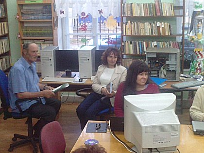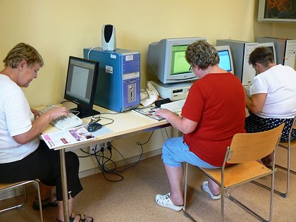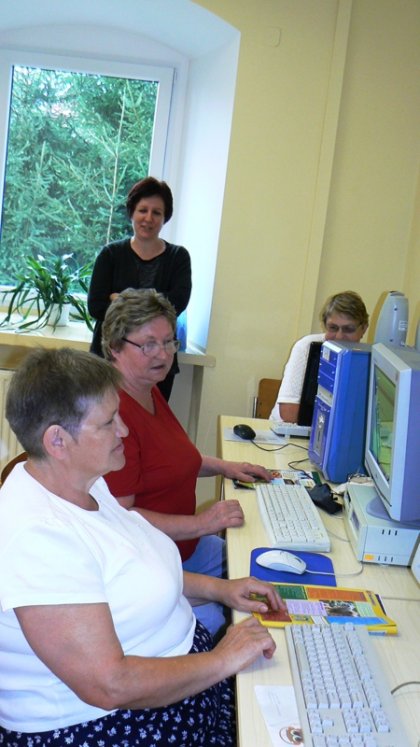 W tym celu dwie bibliotekarki panie Agata Sydorko i Dorota Bilska przeszły odpowiednie przeszkolenie. Uczestnicy warsztatów poznają podstawowe zasady korzystania z komputera, edytora tekstowego i przeglądarki internetowej. Po udzieleniu instrukcji potrafią już pisać i formatować proste teksty, przeszukiwać interesujące ich strony internetowe, bazy biblioteczne, portale informacyjne, portale urzędów lokalnych oraz bazy związane z turystyką, edukacją i kulturą. Mają już pozakładaną pocztę elektroniczną i kontaktują się z bliskimi na całym świecie. Ogółem szkoleniami objętych jest 16 osób. Niektórzy z nich będą od jesieni szkoleni w zakresie programów graficznych i innych użytkowych, bo tak dobrze im się myszkuje w bibliotece. Już we wrześniu kolejni seniorzy w Wojborzu i Ołdrzychowicach Kłodzkich rozpoczną swoją edukację w wirtualnym świecie. Zapraszamy serdecznie.