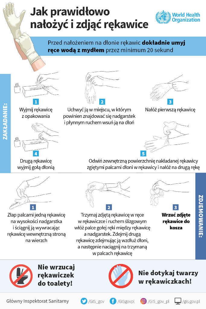Pod linkiem instrukcja "Jak prawidłowo nałożyć i zdjąć rękawice"