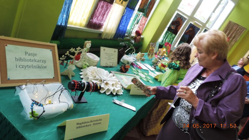 Na wstępie jubileuszu, w czytelni dyrektor Biblioteki Mariola Huzar wraz ze starszym bibliotekarzem Małgorzatą Kłonowską otworzyły wystawę „Pasje bibliotekarzy i czytelników”. Swoje dzieła wystawili: