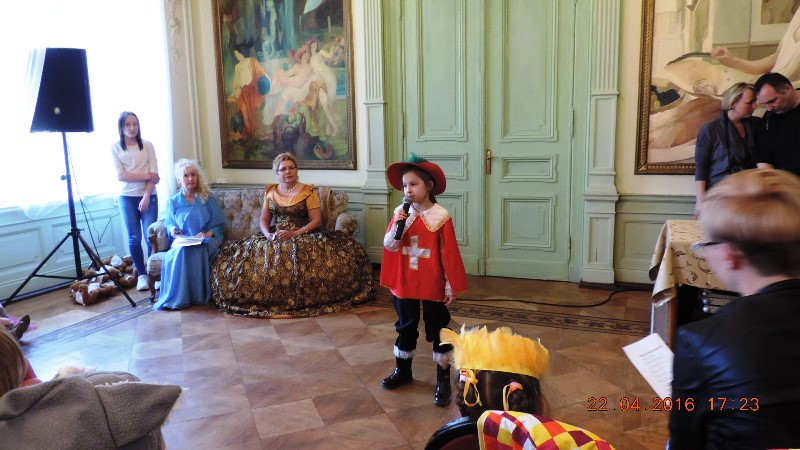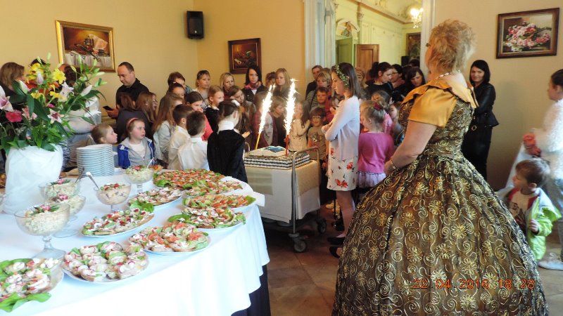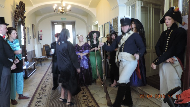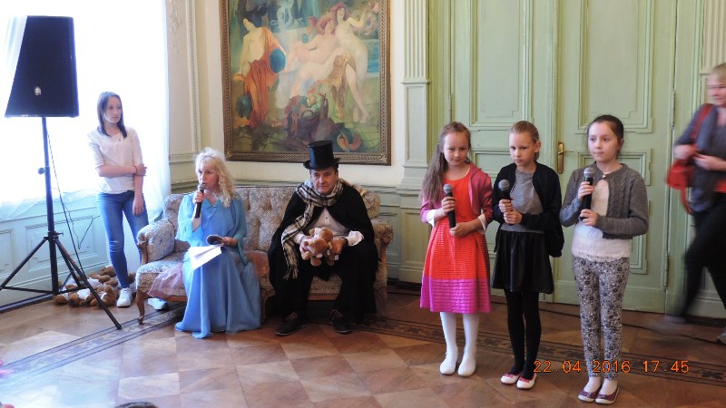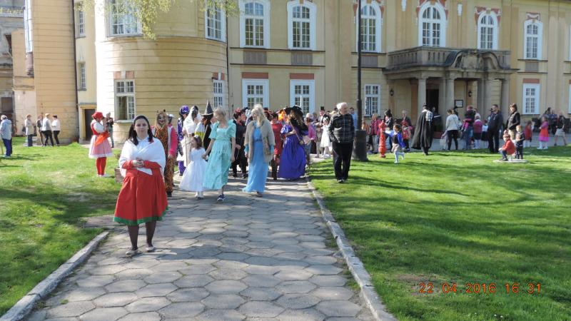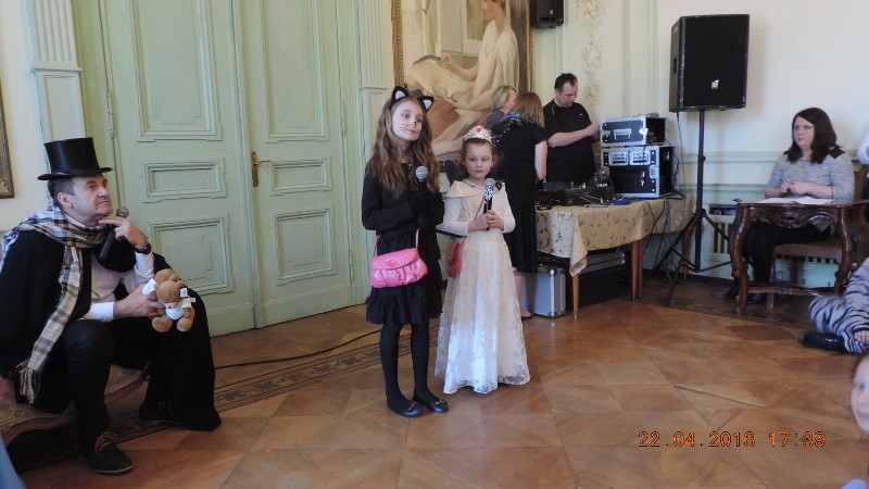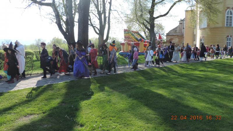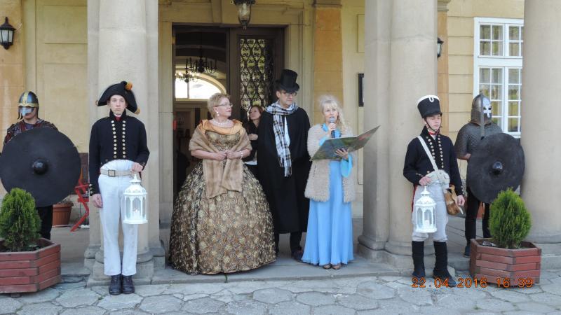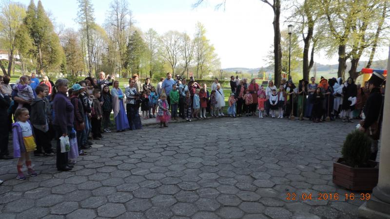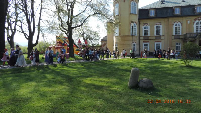 Tradycyjnie rozpoczęliśmy od parady Andersena (w tej roli dyrektor Ośrodka Kultury pan Krzysztof Matysiak) i postaci bajkowych wokół pałacowego parku, którego historia sięga XVII wieku. Przy bramie wejściowej do obiektu stanęła straż pałacowa, która dbała o bezpieczeństwo wszystkich bohaterów, którzy przybyli z różnych stron świata.