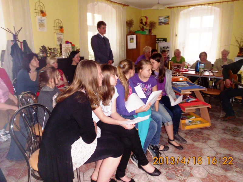 Na spotkanie wielopokoleniowe przybyło blisko trzydzieści osób, w tym miejscowy ks. proboszcz Janusz Garula. Tutejsza bibliotekarka Izabela Mucha upiekła pyszne ciasto i przy kawie ze skupieniem obejrzano filmy edukacyjne oraz wysłuchano o tym, jak nie stać się ofiarami oszustów i naciągaczy.