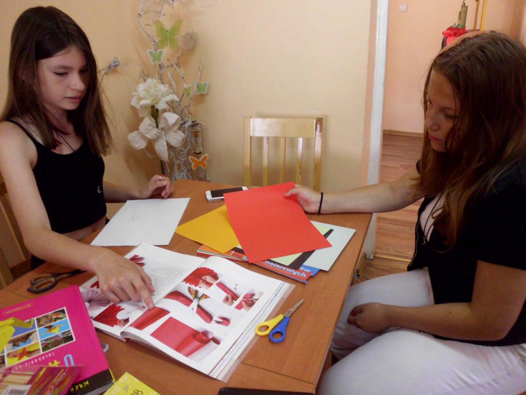 Natomiast dziewczyny wykonały kolorowe rozetki z papieru. Na półkach biblioteki znajdziemy jeszcze więcej kreatywnych propozycji.