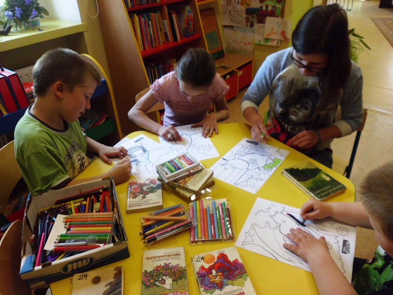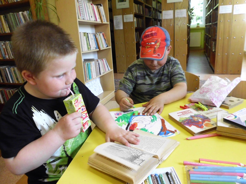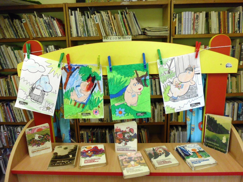 Pierwsza z dziewięciu książek o Muminkach została opublikowana w 1945 roku, każda z nich odniosła wielki sukces. Książki zostały przetłumaczone na ponad 30 języków, można się spotkać z ich teatralnymi, komiksowymi i serialowymi interpretacjami. Muminki nieustannie cieszą się dużą popularnością wśród młodych czytelników. Najmłodsi czytelnicy, którzy uczestniczyli w spotkaniu wykazały się znajomością bajkowych bohaterów fińskich powieści oraz ich przygód. Dzieci poznały ciekawostki z Doliny Muminków, informacje o jej niezwykłych mieszkańcach. Dla utrwalenia wiadomości czytelnicy wykonali piękne prace plastyczne, które przez najbliższy tydzień można podziwiać w stworzonej przez nas muminkowej wystawie.