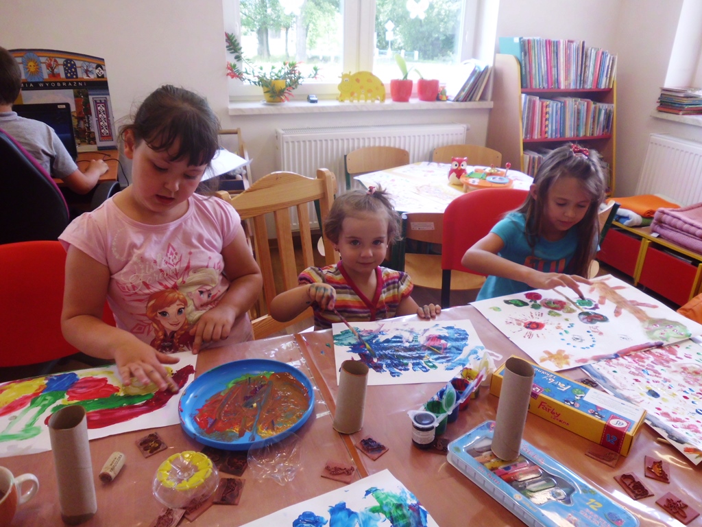 Okazuje się, że kawa nie służy tylko do picia, o czym przekonały się mamy najmłodszych czytelników odwiedzających bibliotekę, działającą przy Centrum Inicjatyw Społeczno-Kulturalnych w Starym Wielisławiu. Z ogromnym zainteresowaniem wzięły udział w warsztatach malowania kawą. Ich pociechy, w tym czasie malowały farbami, używając zamiast pędzli swoje paluszki. Oczywiście, ciekawość wzięła ich w swoje objęcia i przyłączyły się do wspólnej zabawy z kawą…