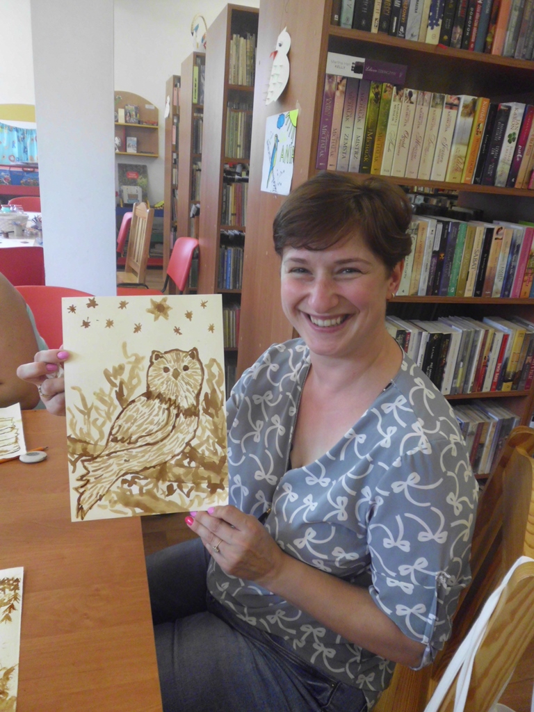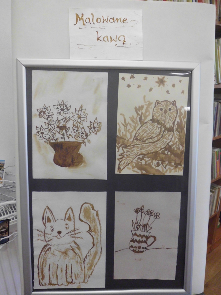 - Sztuka malowania kawą? Odrobina kawy, ołówek, pędzelek i sporo wyobraźni może zdziałać cuda, stwierdza pani bibliotekarka Ewa z Filii Biblioteki Publicznej Gminy Kłodzko w Starym Wielisławiu. Wiedzę i umiejętności w tym zakresie zyskała na warsztatach zorganizowanych przez Powiatową i Miejską Bibliotekę Publiczną oraz Koło Kłodzkie Stowarzyszenia Bibliotekarzy Polskich.