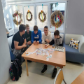 W dniu 19 listopada 2025 r. w Filii Biblioteki Publicznej Gminy Kłodzko w Wojborzu odbyło się spotkanie w ramach klubu gier planszowych. Przybyły dwie grupy świetlicowe z miejscowej Szkoły Podstawowej wraz z nauczycielami: Krzysztofem Krajewskim i Michałem Kubatem. Towarzyszyły im także dwie seniorki: Jadwiga i Krystyna, które wniosły do wydarzenia ciepło i doświadczenie. Cel spotkania był prosty, ale niezwykle wartościowy. Wspólna gra w klasyczne planszówki: chińczyka, warcaby, sz