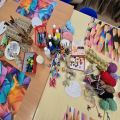 Kolejny dzień ferii w Filii bibliotecznej w Jaszkowej Górnej upłynął w wyjątkowo twórczej atmosferze. Henia przygotowała dla wszystkich piękne warkoczyki z włóczki, które później stały się ozdobą laleczek robionych przez dziewczynki z opakowań po jajkach. Każda laleczka była inna, pełna charakteru i fantazji. Franiu postawił na zupełnie inną formę kreatywności — zrobił robaczki i pojazd, którymi później z dumą się bawił. Reszta chłopców skup