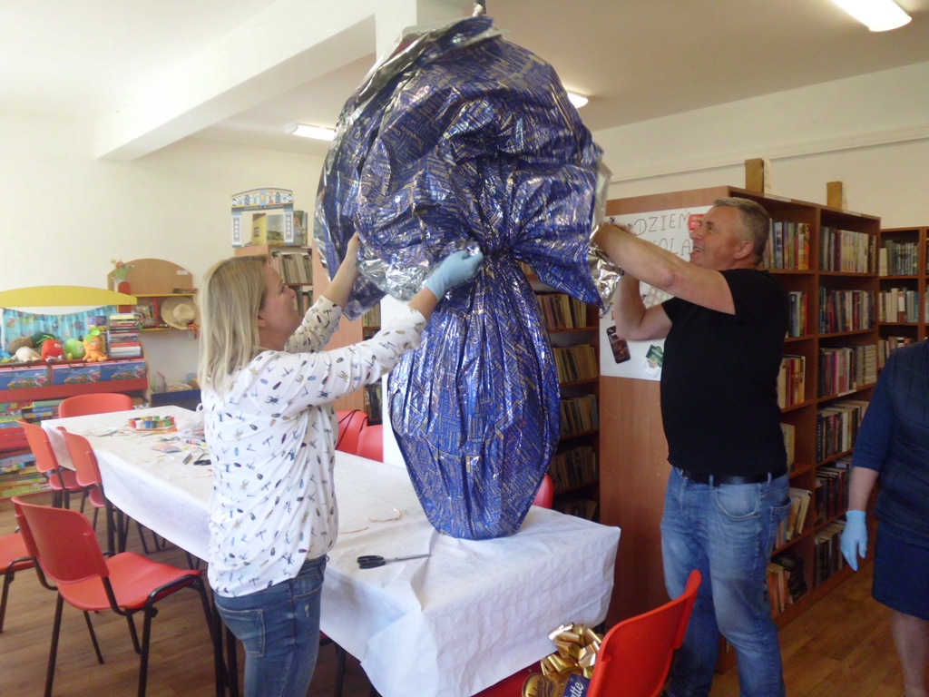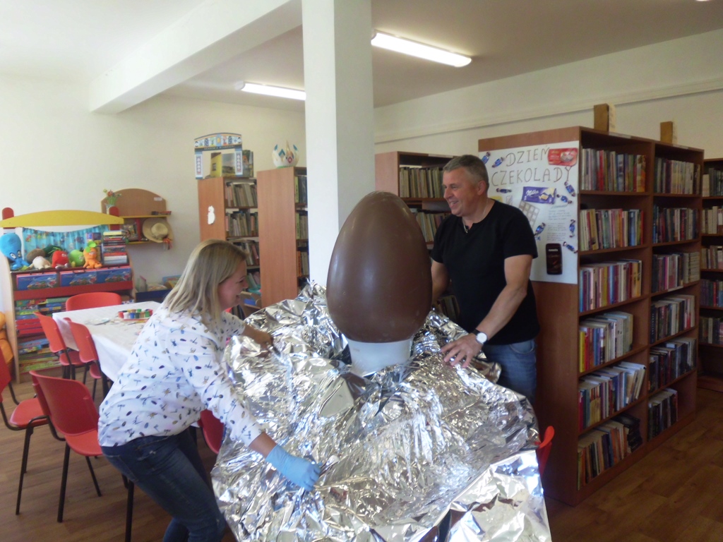Filia Biblioteki Publicznej Gminy Kłodzko w Starym Wielisławiu nie próżnuje i wciąż poszukuje czegoś nowego… Tym razem pani bibliotekarka Ewa wraz z mężem, po majówce spędzonej we Włoszech przytargała do Polski ośmiokilogramowe jajo pełne słodyczy...