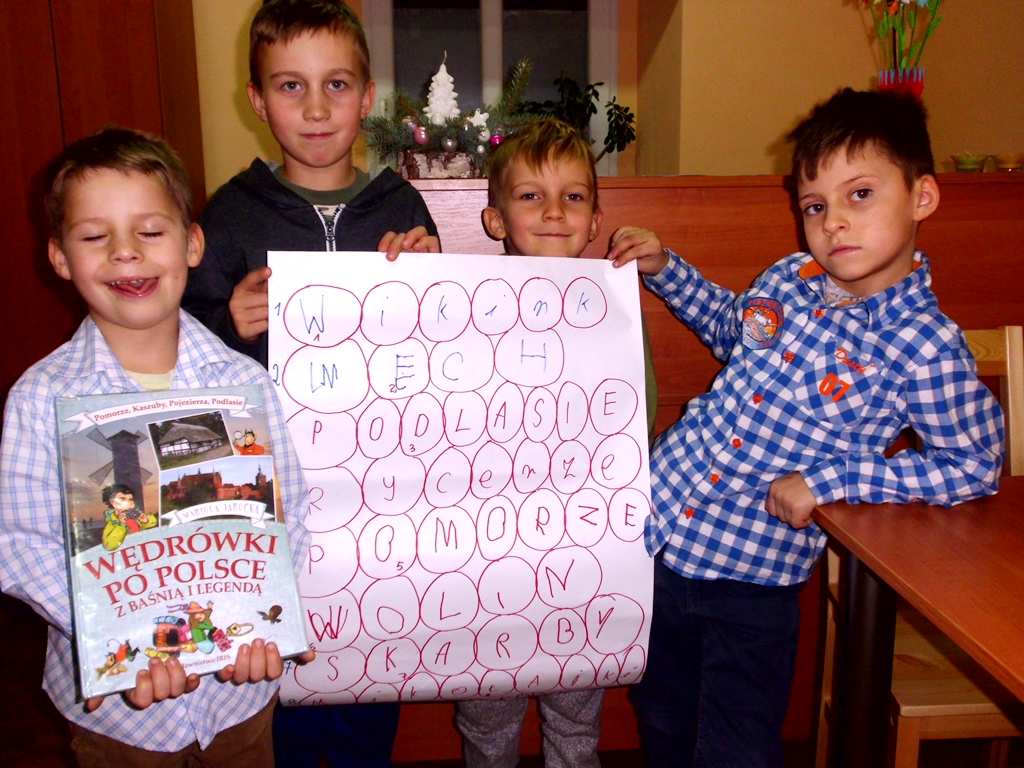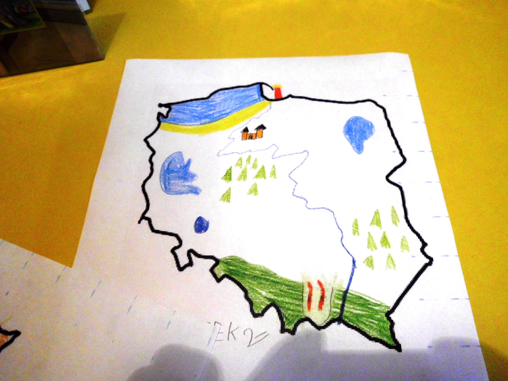 Był to zaczątek do tego, aby omówić różne regiony Polski, te znane i te mniej znane… Chłopcy bardzo dobrze radzili sobie z mapą. Bez problemu oznaczali swoje ulubione lokalizacje w Polsce.