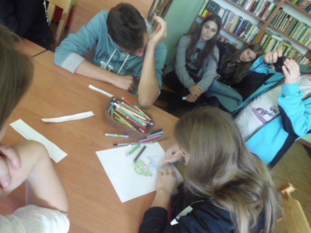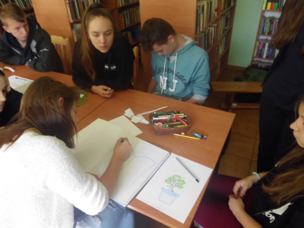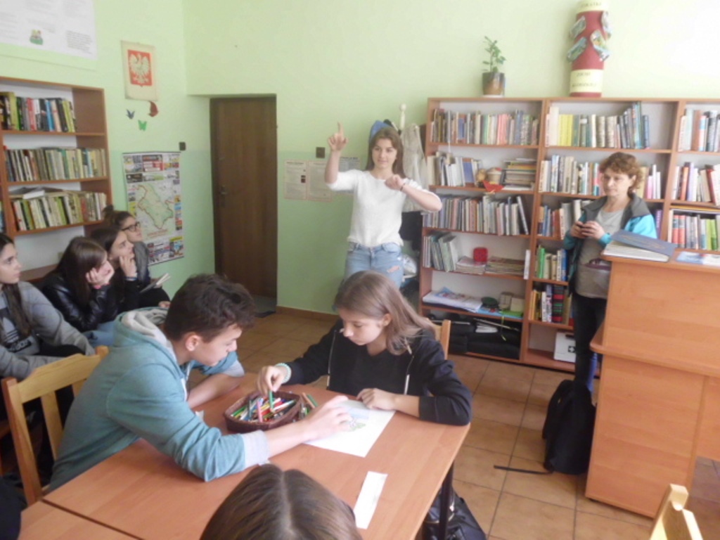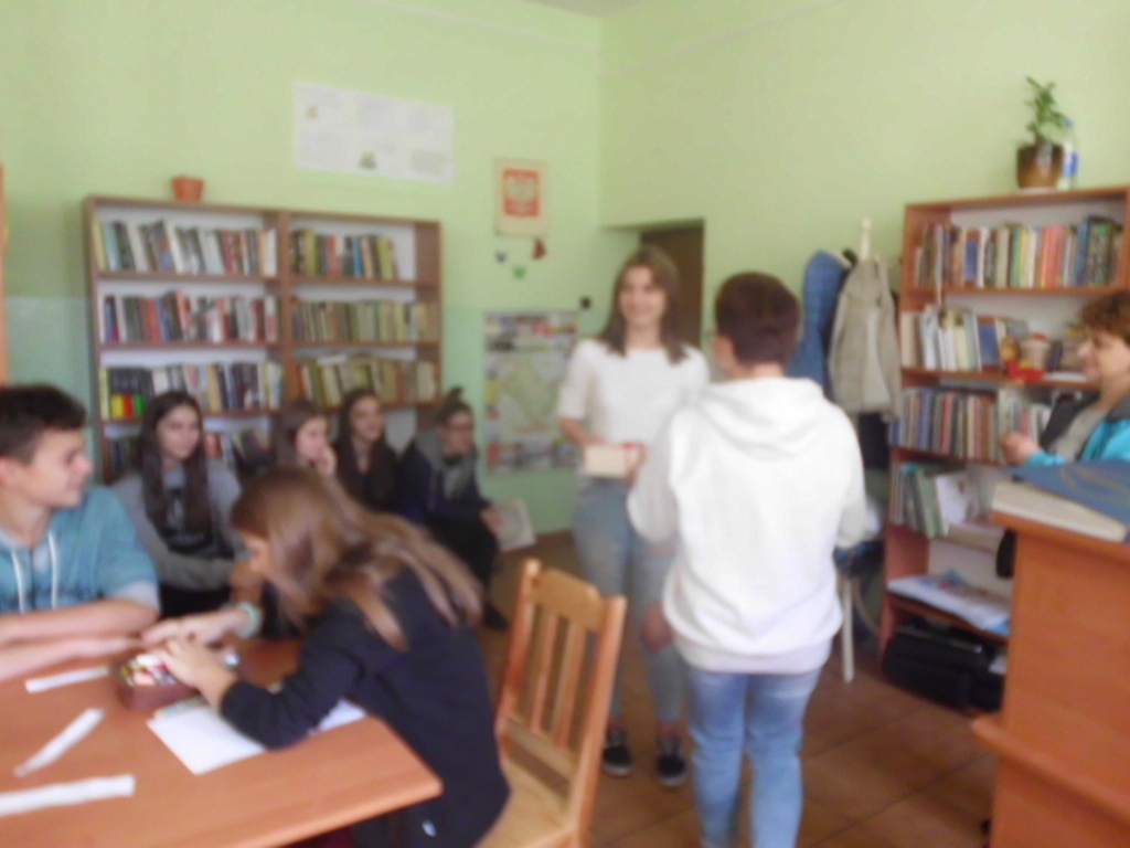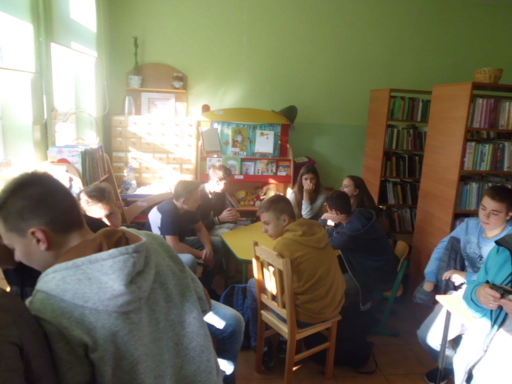 Pani bibliotekarka Magdalena Berestecka, zachęcała młodzież do korzystania z usług czytelni. Poprzez zorganizowane zajęcia uświadamiała potrzebę rozwoju intelektualnego oraz zachowań w różnych sytuacjach dnia codziennego, jakie mogą nas spotkać. W życiu pełnimy różne role, w których możemy nagle się znaleźć. Wymaga to od nas poradzenia sobie, szybkiego reagowania i odpowiedniej wyobraźni.