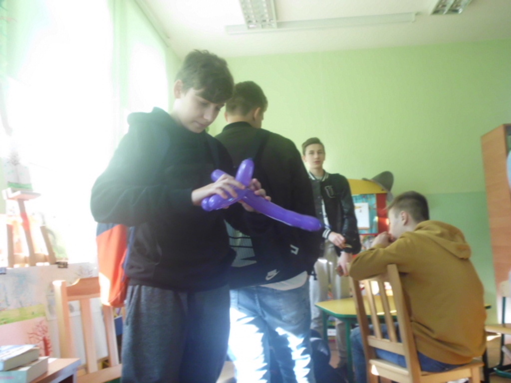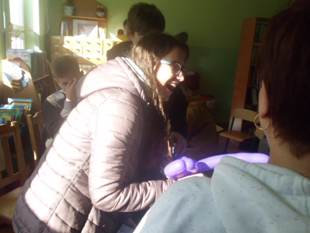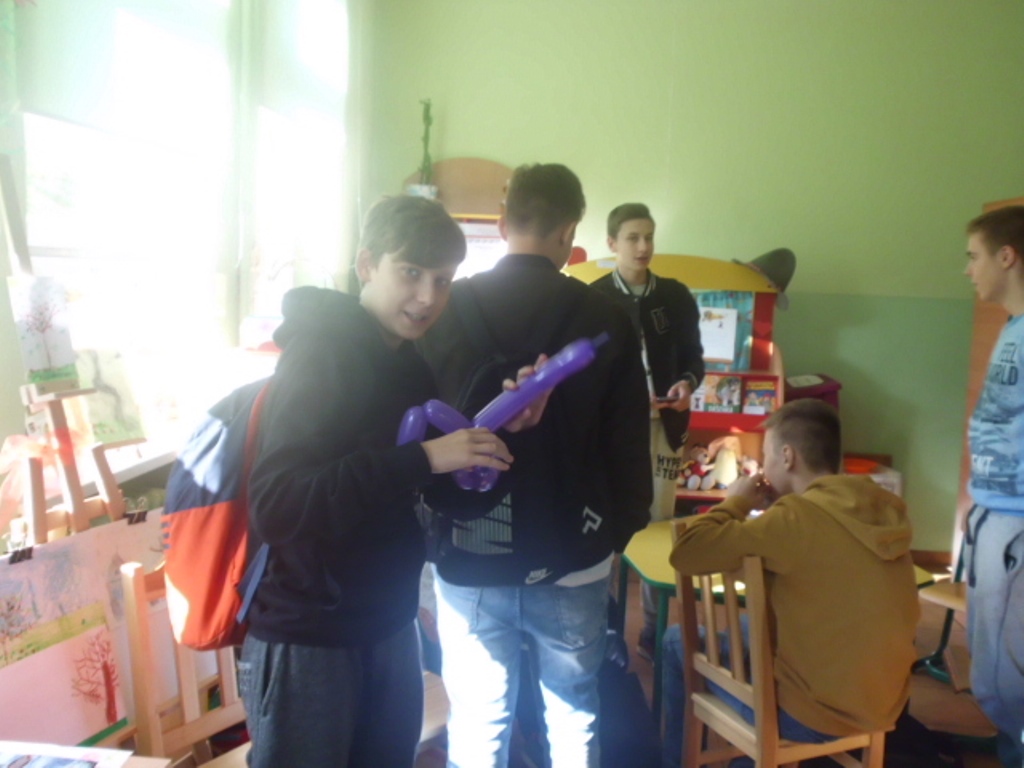 Toteż młodzież miała do wykonania zadania, które wcześniej wylosowali. Odgrywali role widza, gościa, inni pląsali wcielając się w role opiekuna dziecięcego, modelowali balony, rysowali i zgadywali. Nie obyło się oczywiście bez czytania poezji, łamańców językowych oraz „Wesela” Stanisława Wyspiańskiego, które sprawia wiele trudności. Mimo to, aktorzy sobie świetnie poradzili.