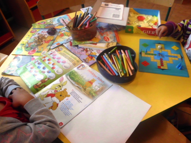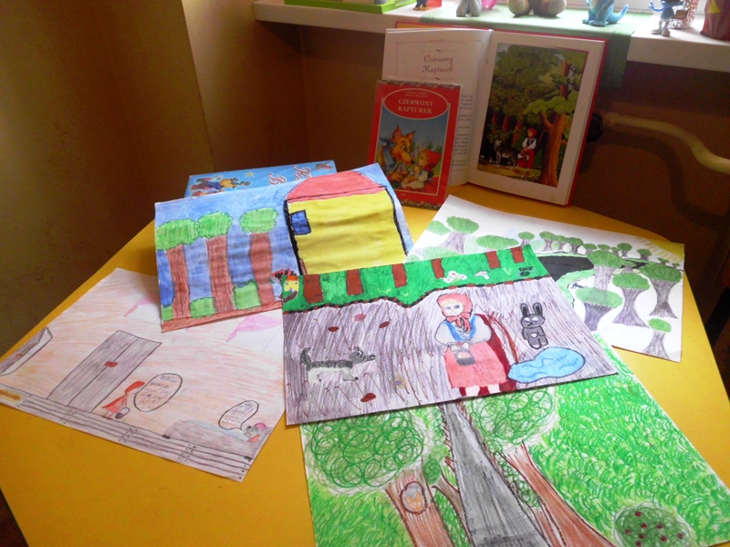 Na „nudy na pudy” nie można było narzekać, bo zestaw wakacyjnego czytelnika zawierał zgadywanki, krzyżówki, scrabble i kalambury. Manualnie też można było się „wyżyć”, gdyż ozdabiano plastikowe doniczki, które będą służyły jako wazoniki na kwiaty przez cztery pory roku. Z mąki i balonów powstały wesołe „Gniotki”. Nowoczesne tablety z Programu Rozwoju Bibliotek „rozszerzyły rzeczywistość” do tego stopnia, że wszystko inne przestało istnieć, niezależnie od wieku. Po pierwszych i kolejnych fascynacjach w końcu wrócono do książek i czytania. Najmłodsi czytali bajki i baśnie. Do „Czerwonego Kapturka” powstały piękne rysunki z nowymi przygodami wilka i Kapturka. Starsi skupili się nad bibliotecznym konkursem na plakat „Bezpieczne wakacje na rowerze”, bo do wygrania atrakcyjna wycieczka do Zamku Książ. Na etapie planowania wycieczki, jeszcze nie wiedzieliśmy, że największą atrakcją podczas tegorocznego lata będzie „złoty pociąg” do skarbów z II Wojny Światowej… Prędzej, czy później wszystko wróci na swój tor historii!