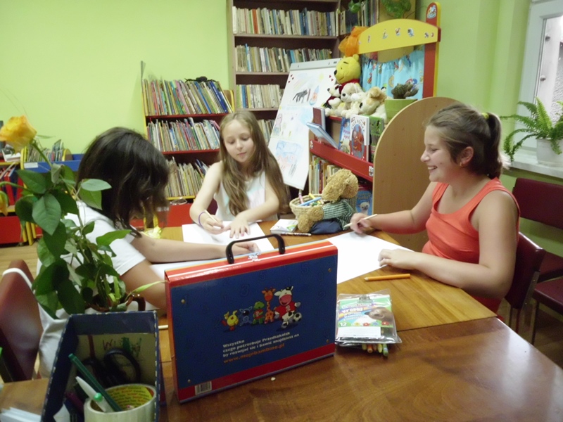 Atrakcją były nowe komputery (laptopy), które pojawiły się w bibliotece w pierwszych dniach lipca i to one otworzyły „wyobraźnię” czytelników na książki, zwiedzanie świata i aktywność w grach komputerowych. Przerywnikiem od wirtualnego świata były zajęcia artystyczne pod hasłem „Co mi wyobraźnia podpowiada”. Stałym elementem wakacyjnych odwiedzin są tu spotkania literacko-plastyczne z książką. Młodzi czytelnicy rysują, a nieco starsi przedstawiają swoje propozycje najciekawszych „czytadeł” na lato. Jedną z nich są książki Edmunda Niziurskiego, który zaprasza czytelnika do świata przygód: Księga urwisów, Awantura w Niekłaju, Wielka heca, Niewiarygodne przygody Marka Piegusa… i wiele innych - „A jutro klasówka”.