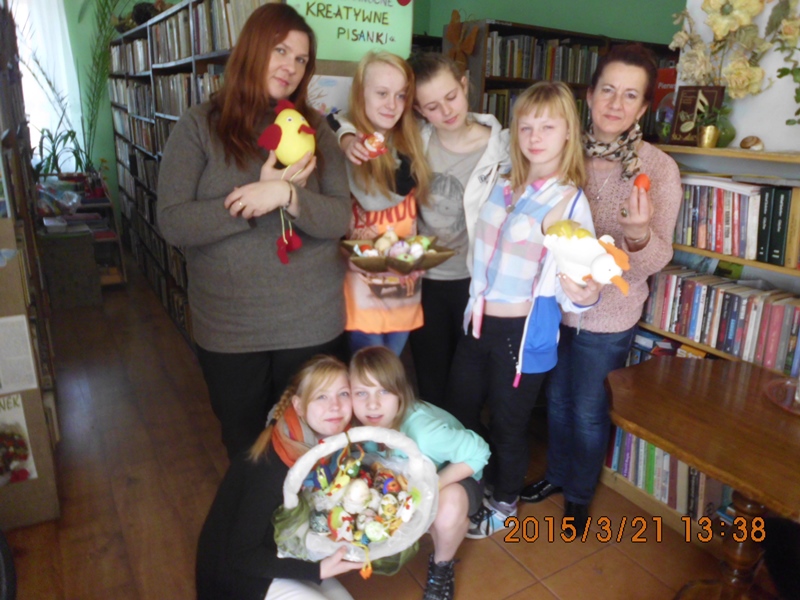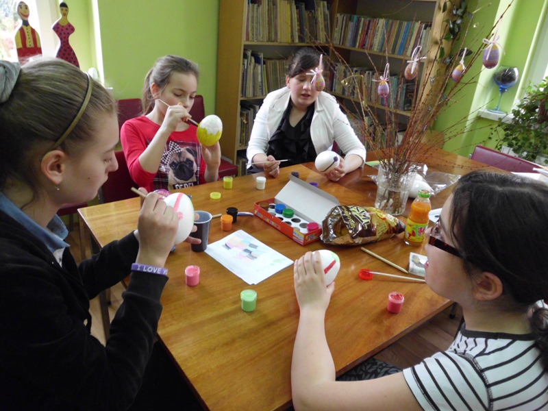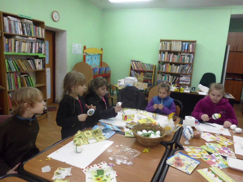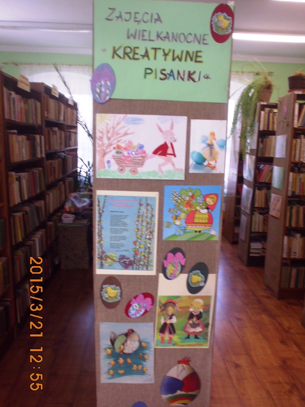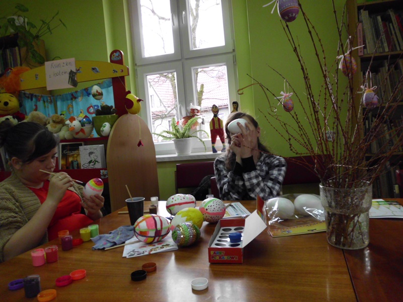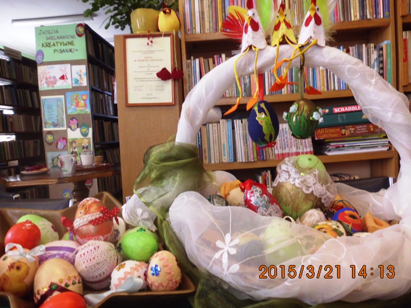 W Szalejowie Górnym pani Monika Fedak znakomicie wykorzystała swoje nowe umiejętności, nabyte podczas warsztatów Stowarzyszenia Bibliotekarzy Polskich w Szczytnej, czego efektem jest zaangażowanie stałych czytelniczek i piękne jajeczka do świątecznego koszyczka.