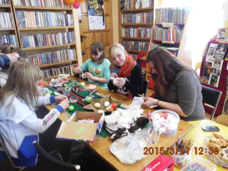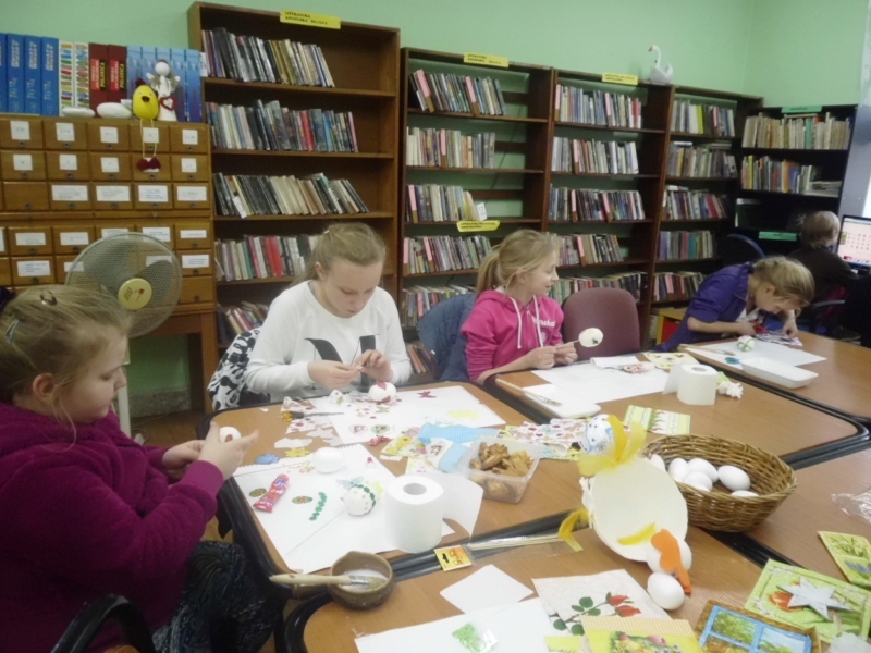 W Bibliotece Publicznej Gminy Kłodzko, panie bibliotekarki maja pełne ręce pracy, bo czytelnicy w okresie przedświątecznym chętnie spotykają się „dookoła wielkanocnego jajka”…