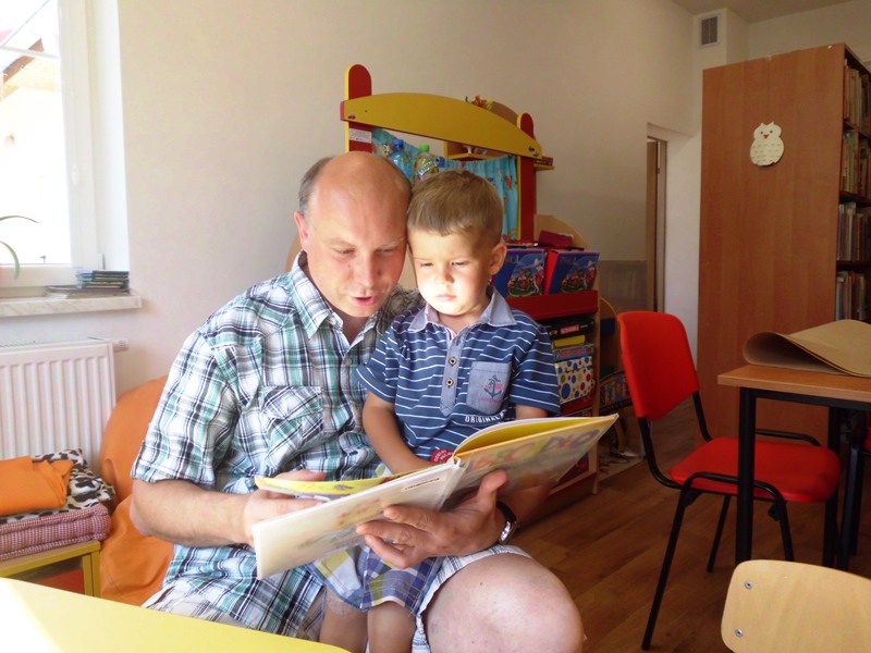 W nowej bibliotece w Starym Wielisławiu, pani Ewa miała to szczęście, że pojawiło się 2 tatusiów ze swoimi pociechami. Pan Marek przeczytał swojemu synowi Dominikowi „Abecadło” Juliana Tuwima. Pan Dariusz czytał córce Kai bajkę o „Warszawskiej syrence.