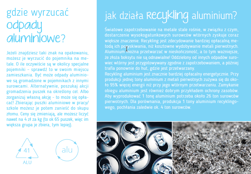 W najnowszej EkoPace znajduje się między innymi mega kolorowanka prezentująca „Aluminiowe Miasteczko” i grę polegającą na wyszukiwaniu puszek – najpopularniejszych opakowań z aluminium. Są także metalowe płytki do eksperymentów magnetycznych, folia, metaliczne kredki i farby, a nawet kreatywne zestawy do składania własnych maszyn.