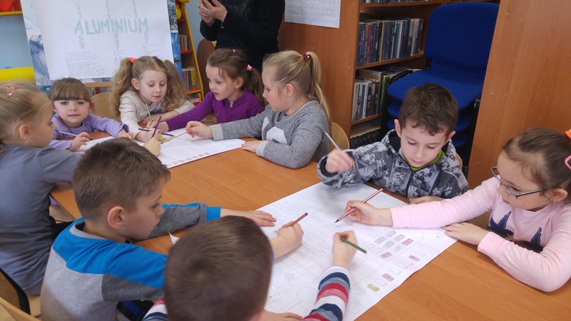 Za nami zajęcia z najmłodszymi mieszkańcami Bierkowic, z miejscowego przedszkola integracyjnego, które poprowadziła pani Roma Szczerbień – doradca biblioteczny. Podczas wprowadzania dzieci do tematu, pani Roma opowiada o tym, jak raz wydobyte aluminium można przetwarzać właściwie bez końca, minimalizując tym samym negatywny wpływ na środowisko. Przy pierwotnym wydobyciu, aluminium jest wytwarzane z boksytów – podstawowych rud glinu, przetwarzane w hutach, a następnie przekazywane do fabryk i odlewni, gdzie powstają ostateczne produkty.
