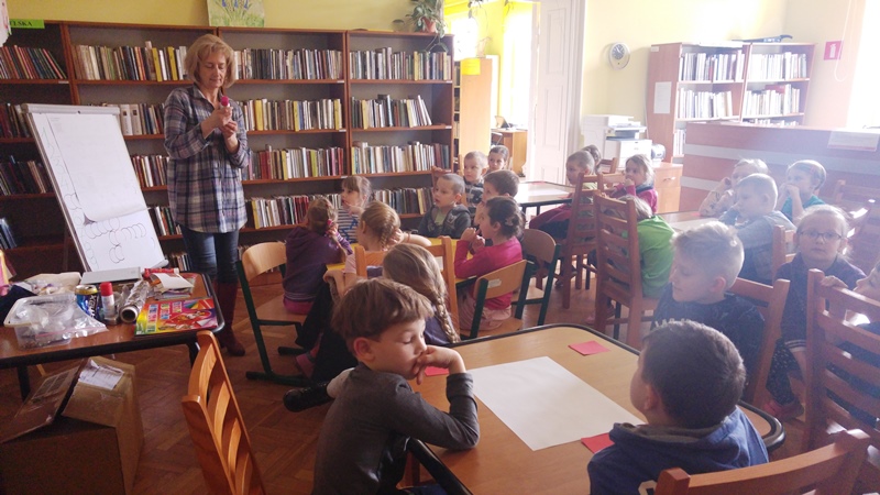 Drugie spotkanie z aluminium, pani Roma Szczerbień przeprowadziła w bibliotece centralnej w Ołdrzychowicach Kłodzkich, a uczestniczyły w nim przedszkolaki z ulicy Osiedlowej.