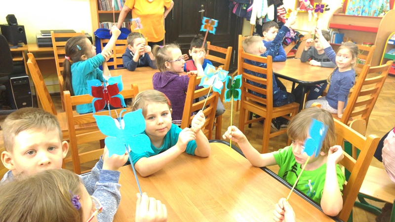 Oprócz nauki był także czas na zabawę, krzyżówkę, śpiewne i motylkowe powitanie wiosny. Dzieci wykonały piękny „aluminiowy labirynt”, który wcześniej rozpoczął swoją trasę na stacji Bierkowice.