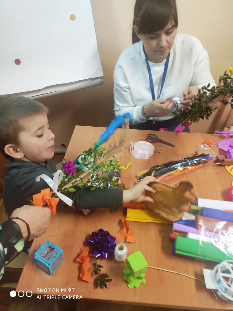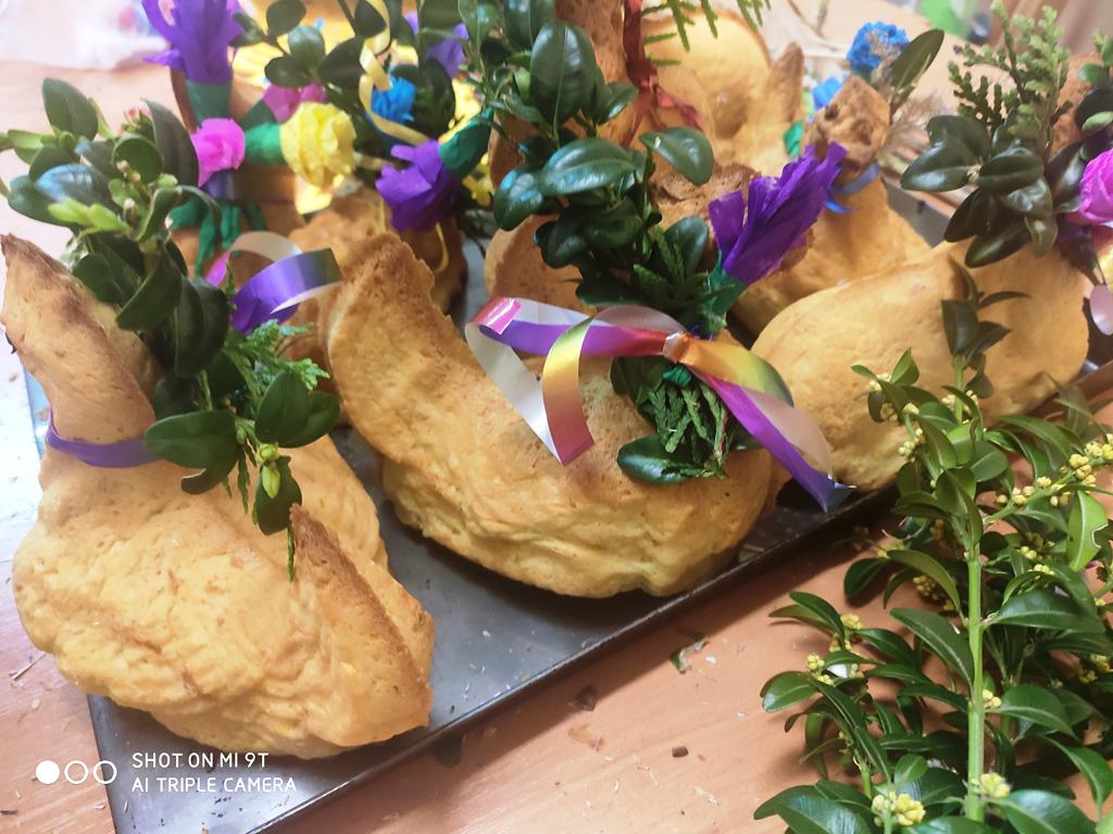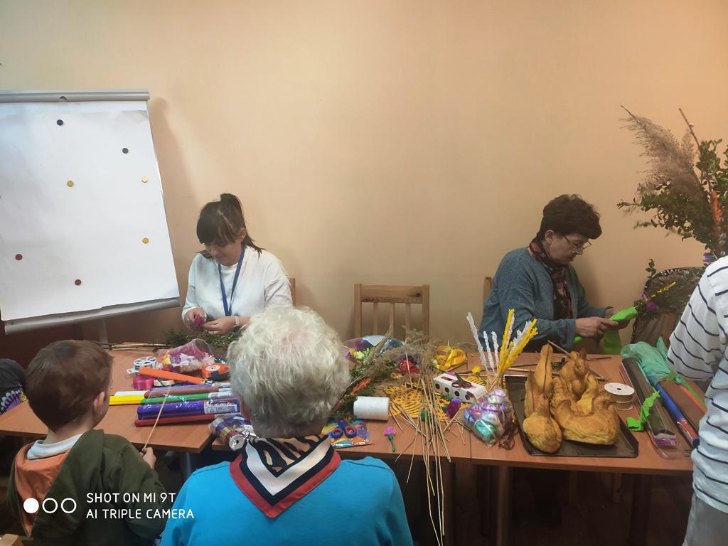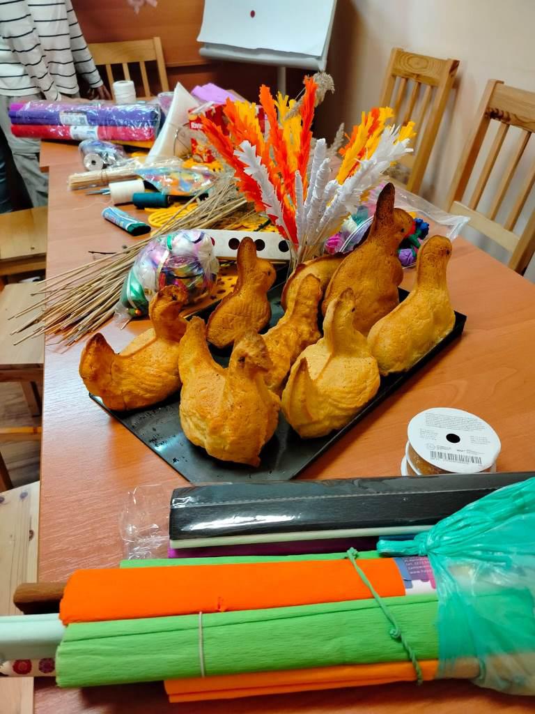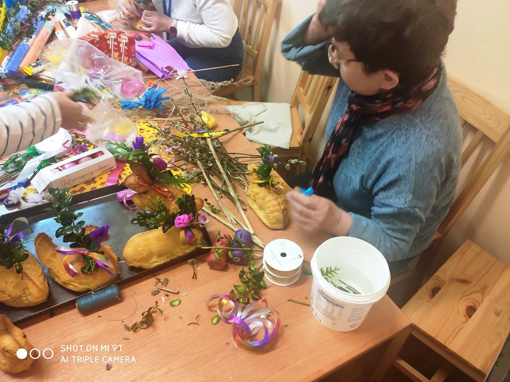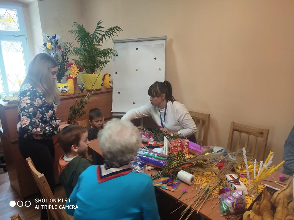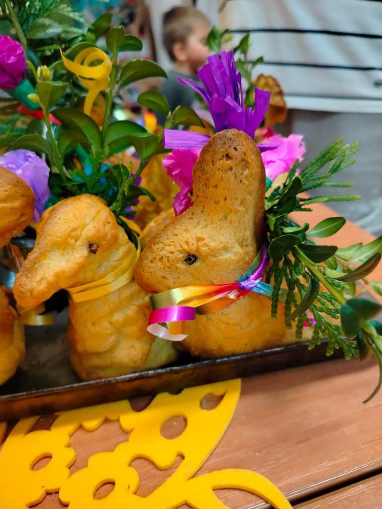 Podczas wspólnych wielkanocnych warsztatów odbywających się w Filii Biblioteki Publicznej Gminy Kłodzko w Wojciechowicach, panie z Koła Gospodyń Wiejskich, Klubu Seniora oraz panie ze świetlicy i biblioteki, w towarzystwie dzieci, wspólnie zaangażowały się w tworzenie ekologicznych ozdób świątecznych. Powstały piękne palmy wielkanocne, figurki gipsowe, baranki, kurki oraz zajączki – te ostatnie wykonane z ciasta wypieczonego przez Koło Gospodyń Wiejskich.