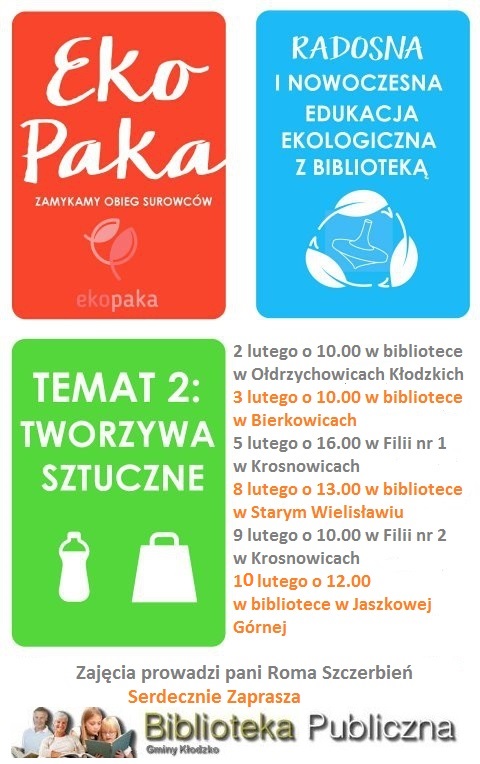 Przypomnijmy, Biblioteka Publiczna Gminy Kłodzko z/s w Ołdrzychowicach Kłodzkich realizuje program edukacji ekologicznej dla dzieci w wieku przedszkolnym i wczesnoszkolnym. Jesteśmy jedną z 50 w kraju, które organizują tego typu warsztaty. Co kilka miesięcy pracownicy rozpakowują EkoPakę i pracują z najmłodszymi czytelnikami, wykorzystując znalezione w niej materiały. Najpierw było drewno, teraz tworzywa sztuczne.