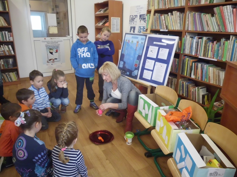 Mariola Huzar, dyrektor Biblioteki: Od samego początku zajęcia prowadzi pani Roma Szczerbień, która w naszej Bibliotece pełni funkcję animatora różnego rodzaju aktywności skierowanych do dzieci. Tym razem mali ekolodzy poznają recykling tworzyw sztucznych. Odkrywają, jak powstaje plastik, jakie opakowania są z niego produkowane, gdzie wyrzucać odpady z tworzyw sztucznych oraz jak poddać je recyklingowi.