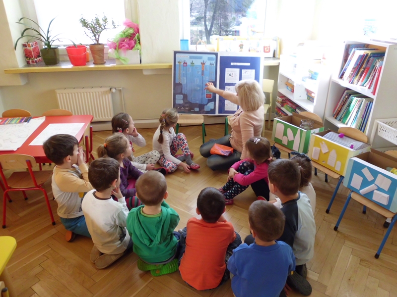 Po wstępnym wprowadzeniu do tematu, pani Roma zaprasza dzieci do wypróbowania zabaw i zadań, a jej metody pracy są tak skonstruowane, że wszyscy pracują na 100%. Są to gra „Nawlekaj nie czekaj”, karty memo, masa plastyczna bubber (której prawie nikt nie znał wcześniej), chińska łamigłówka „Tangram” oraz lubiane przez dzieci klocki lego. Wszystkie te narzędzia pracy są ukierunkowane na tworzywa sztuczne. W trakcie zajęć powstaje ogromna kolorowanka i plakat obrazujący wydobycie ropy naftowej, który jest jednocześnie ilustracją do książki Aleksandry i Daniela Mizielińskich „Pod ziemią. Pod wodą”.