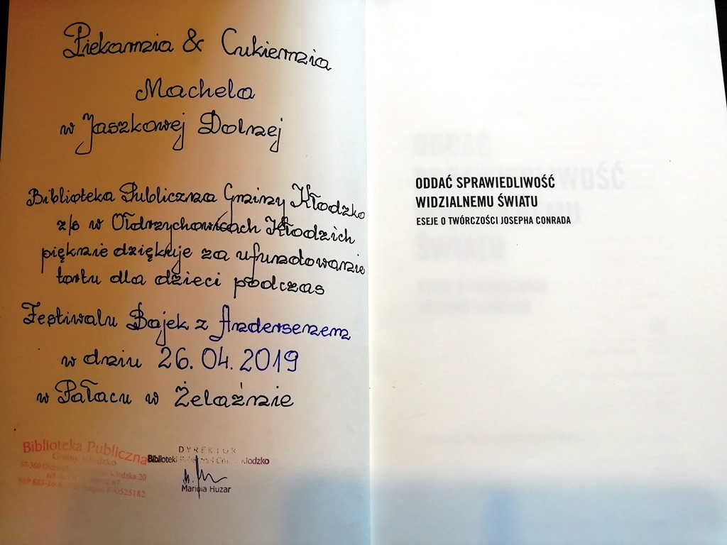 Nieodzownym elementem każdej edycji festiwalu jest baśniowy tort wypieczony przez Piekarnię & Cukiernię Machela z Jaszkowej Dolnej. Był piękny, zaczarowany i smakował jak „niebo w gębie”… Jego krojeniem zajęli się Andersen i „Czarna dama kameliowa” (Katarzyna Czeryba). Dziękujemy!!!