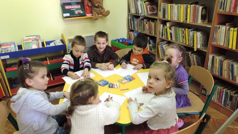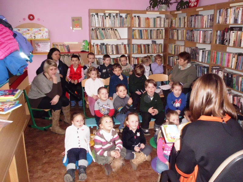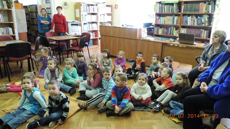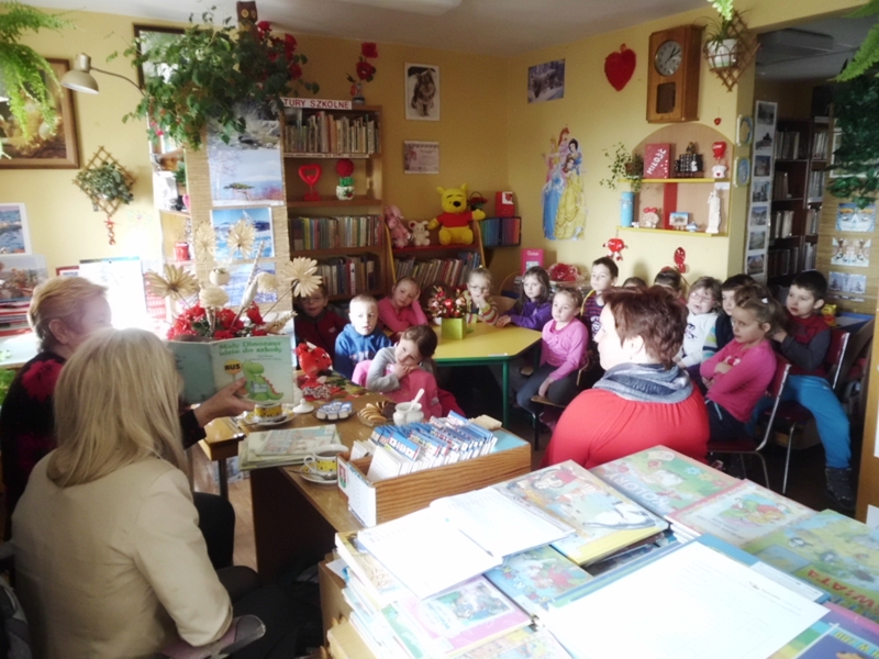 W Żelaźnie czytającym gościem była pani Joanna Bujak, nauczyciel ze Szkoły Integracyjnej w Szalejowie Górnym. Pani Joanna jest koordynatorem szkolnego zespołu do spraw promocji zdrowia. Dlatego też, na dobry początek była tematyczna pogadanka. Potem czytanie opowiadania „Dynastia Miziołków” Joanny Olech o wizycie u dentysty. Natomiast bibliotekarka Magdalena Berestecka wprowadziła młodych czytelników w baśniowy nastrój „Bałwana ze śniegu” H.Ch. Andersena. Po czytaniach dzieci przystąpiły do ilustrowania. I tak powstała pamiątkowa galeria prac.