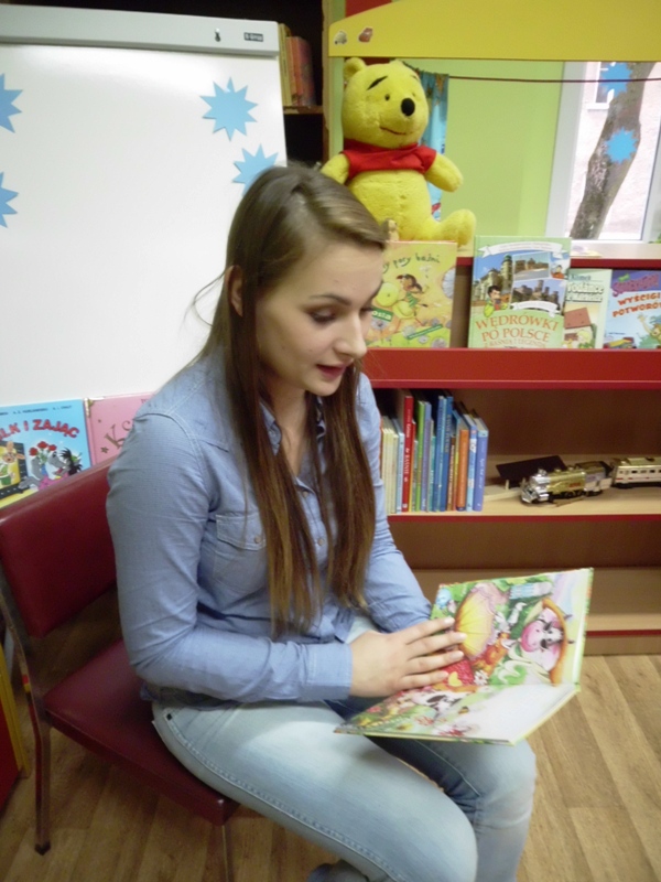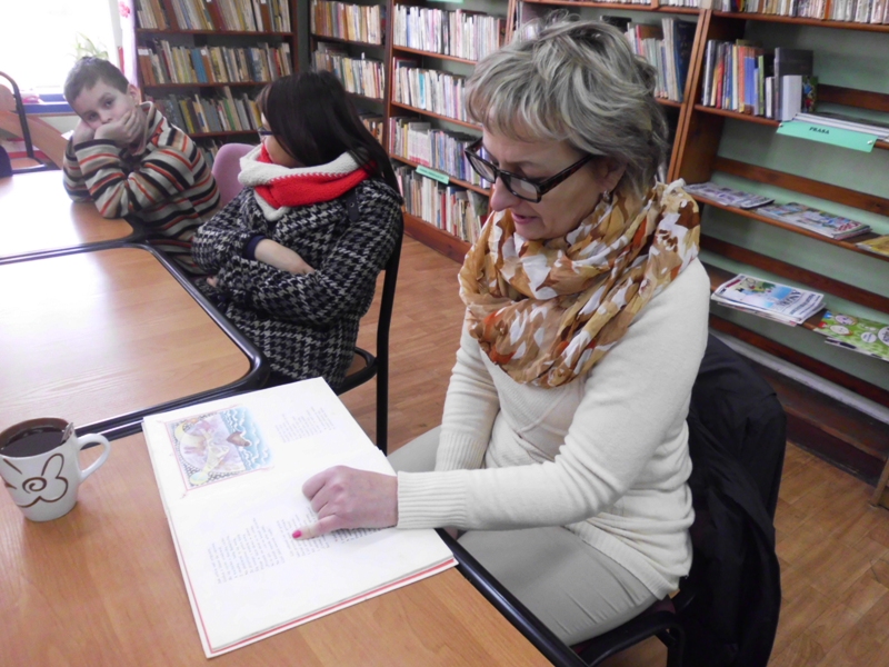 Czytała także przekonywująco: „Alicję w krainie czarów”, „Bezdomne wiewiórki”, „Jasia Fasolę” i „Królewnę Śnieżkę” ze zbioru Bajki Świata pod redakcją Andrzeja Gordziejewicz-Gordziejewskiego. Podczas dyskusji z młodymi czytelnikami „na poważnie” zatrwożyła się pani bibliotekarka Małgorzata Pilipaka, gdy usłyszała, iż marzeniem jednego z chłopców jest mieć na własność tę bibliotekę wraz ze wszystkimi książkami.