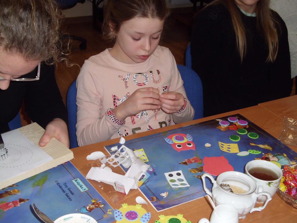 Dodatkową propozycją były kreatywne sowy, które również wzbudziły zainteresowanie, co też widać w galerii zdjęciowej. Na zakończenie, dziewczynki ograły dyrektorkę w chińczyka.