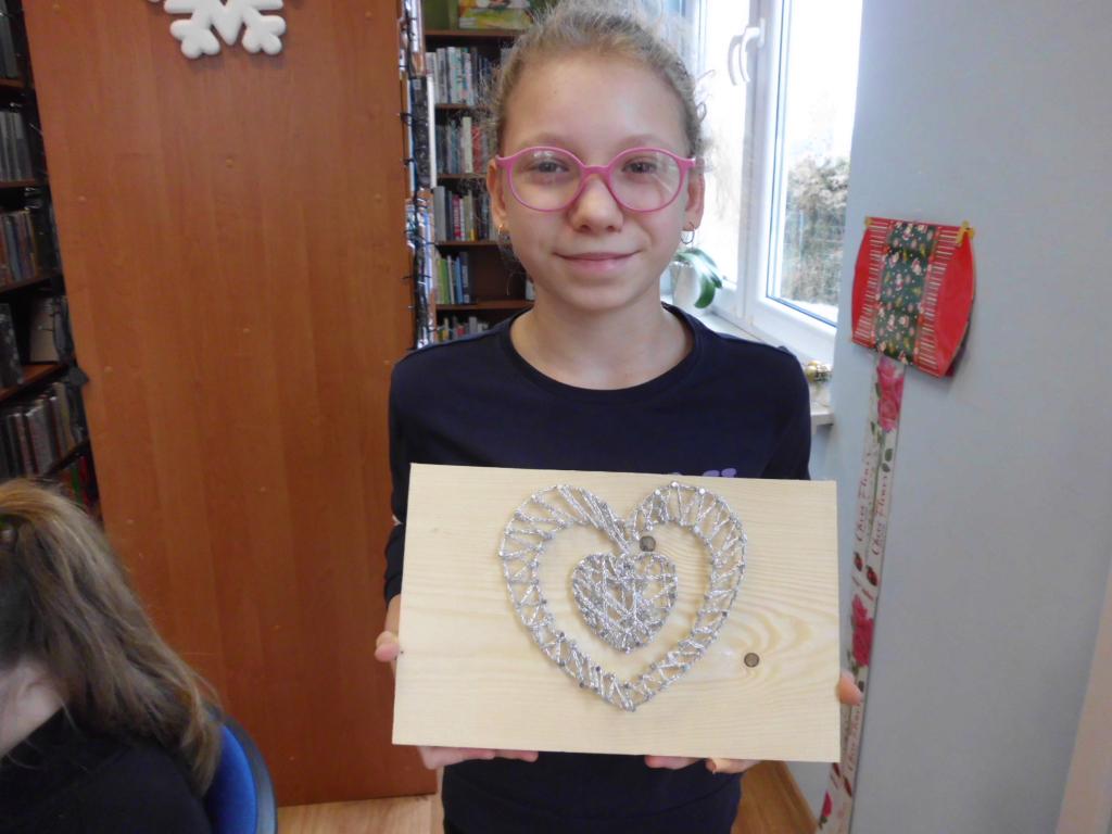W ostatnią sobotę stycznia Filia Biblioteki Publicznej Gminy Kłodzko w Bierkowicach biła w rytmie serc. Do biblioteki przyjechała dyrektorka Mariola Huzar z mobilnym warsztatem string.art.