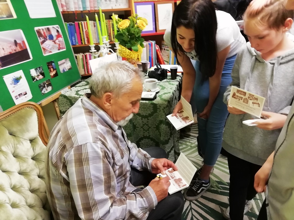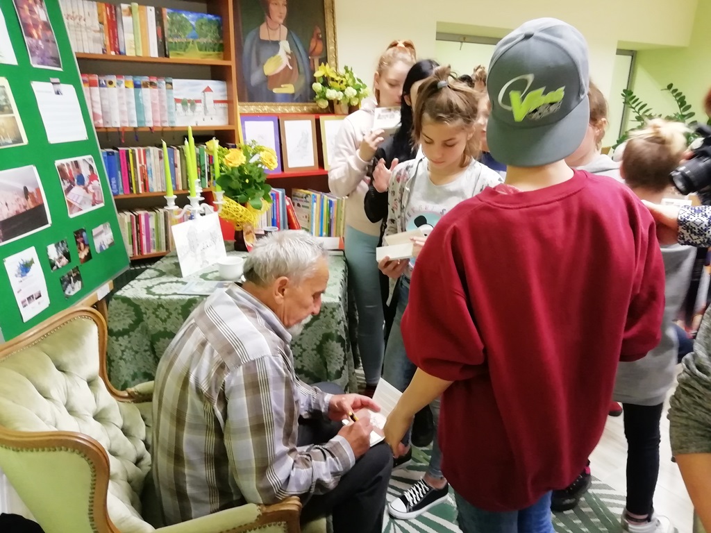 Obecna na spotkaniu lokalna poetka pani Grażyna Sobczak zaprezentowała także swoje wiersze. Zainspirowana przez pana Kazimierza, pokazała swój kolejny talent gitarowy wraz ze śpiewem. Wszystkie dziewczęta z MOS-u otrzymały autorskie wiersze poetki wraz z autografem. Wiersze, zgodnie z intencjami akcji „Przekaż wiersz” zostały przepisane na kartki papeterii i zostaną przekazane radnym gminy wiejskiej Kłodzko podczas sesji, która odbędzie się 30 maja 2019 roku.