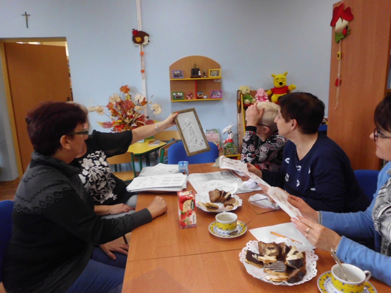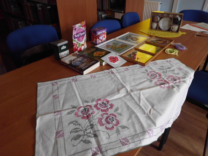 Pani Roma zaprezentowała swoje prace, wykonane haftem kłodzkim. Każda z pań była pod ogromnym wrażeniem. Niebawem rozpoczniemy realizować się w nowej pasji, pod kierunkiem utalentowanej artystki, która rozwijała swój kunszt w Szkole Haftu.