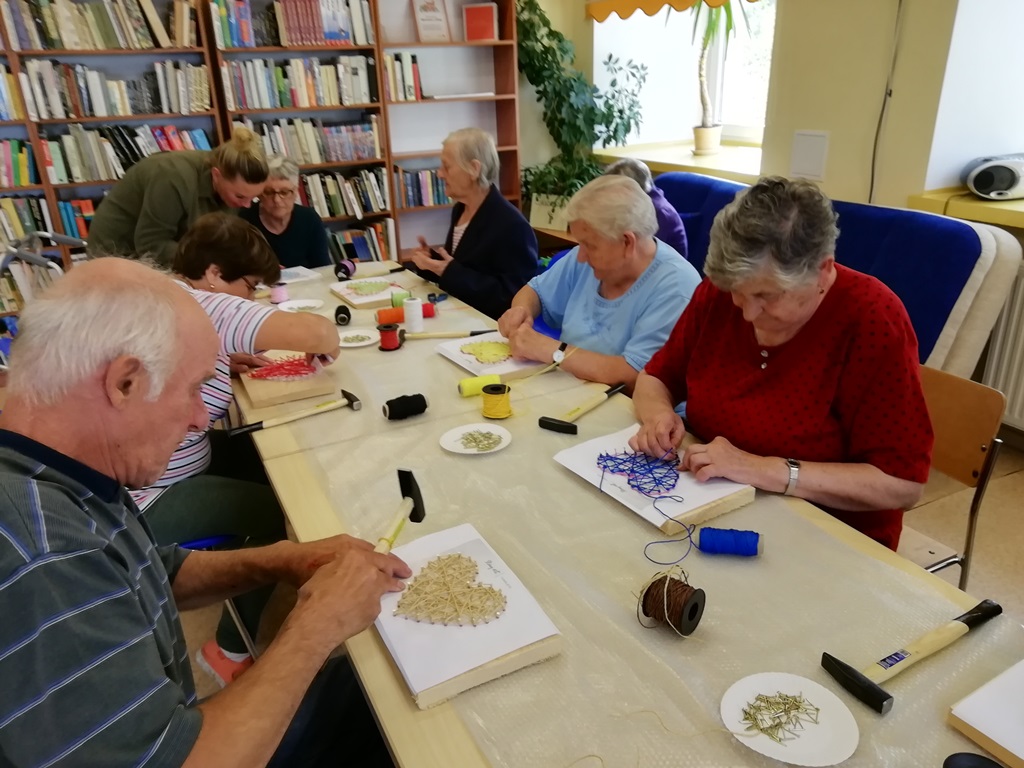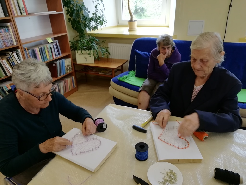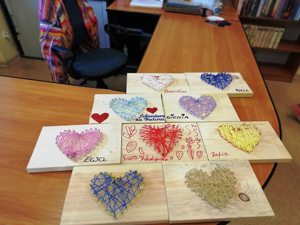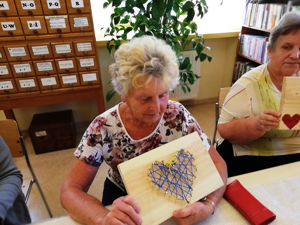 Do udziału w warsztatach zaprosiliśmy także pensjonariuszy Dziennego Domu Seniora z Jaszkowej Górnej. W bibliotecznej scenerii, pod kierunkiem dyrektorki Biblioteki Marioli Huzar i przy wsparciu miejscowej bibliotekarki seniorzy wykonali własnoręcznie serca od serca…