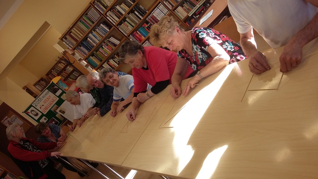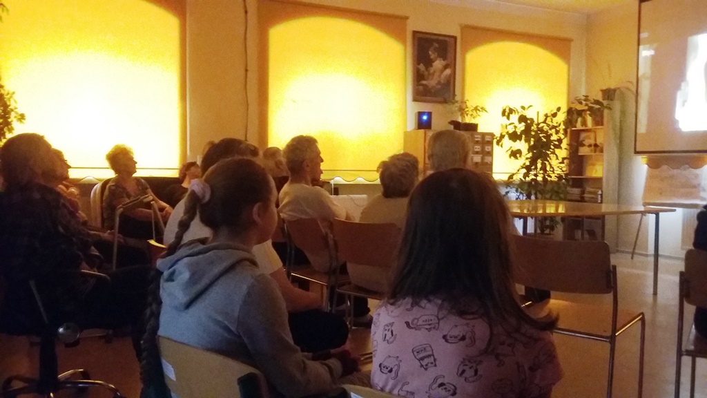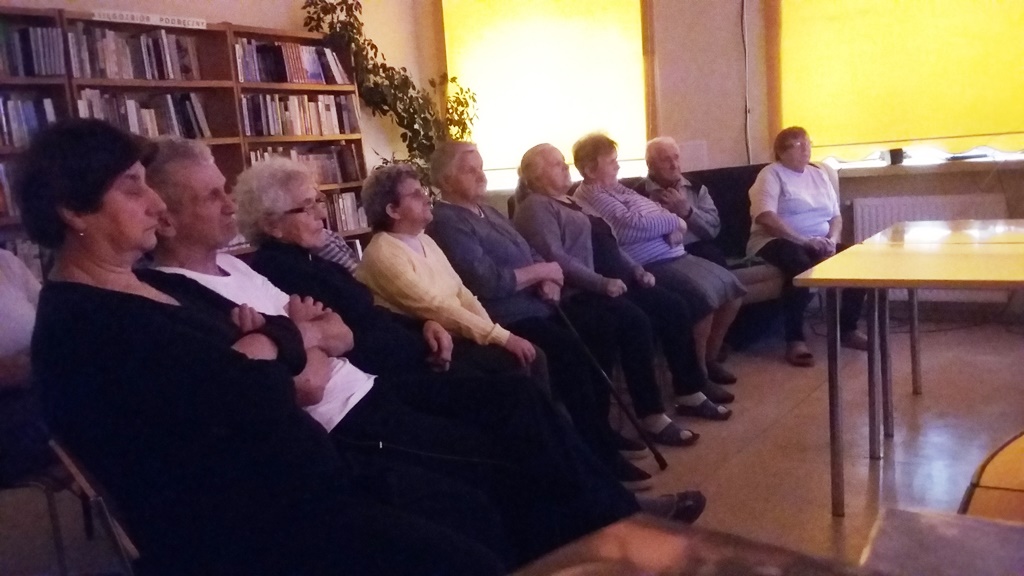 Seanse te cieszyły się dużym powodzeniem, także wśród przebywających w tym czasie w bibliotece dzieci, które chętnie wraz z seniorami poznawały historię swoich ulubionych baśniowych postaci. Seniorzy na zajęciach z biblioterapii pracowali również z książką, głównie z przewodnikami turystycznymi i mapami, poznając nasze okoliczne zabytki i miejsca ciekawe do odwiedzenia.