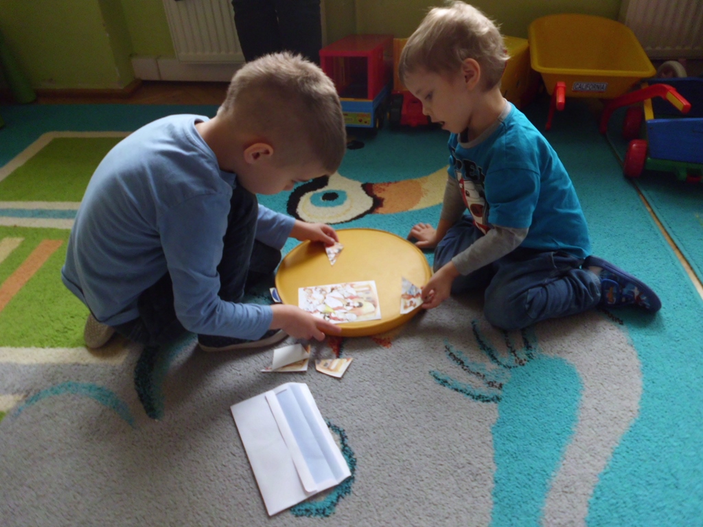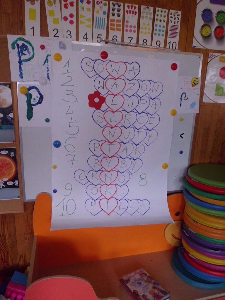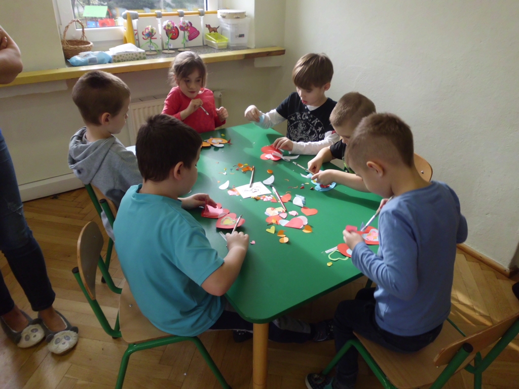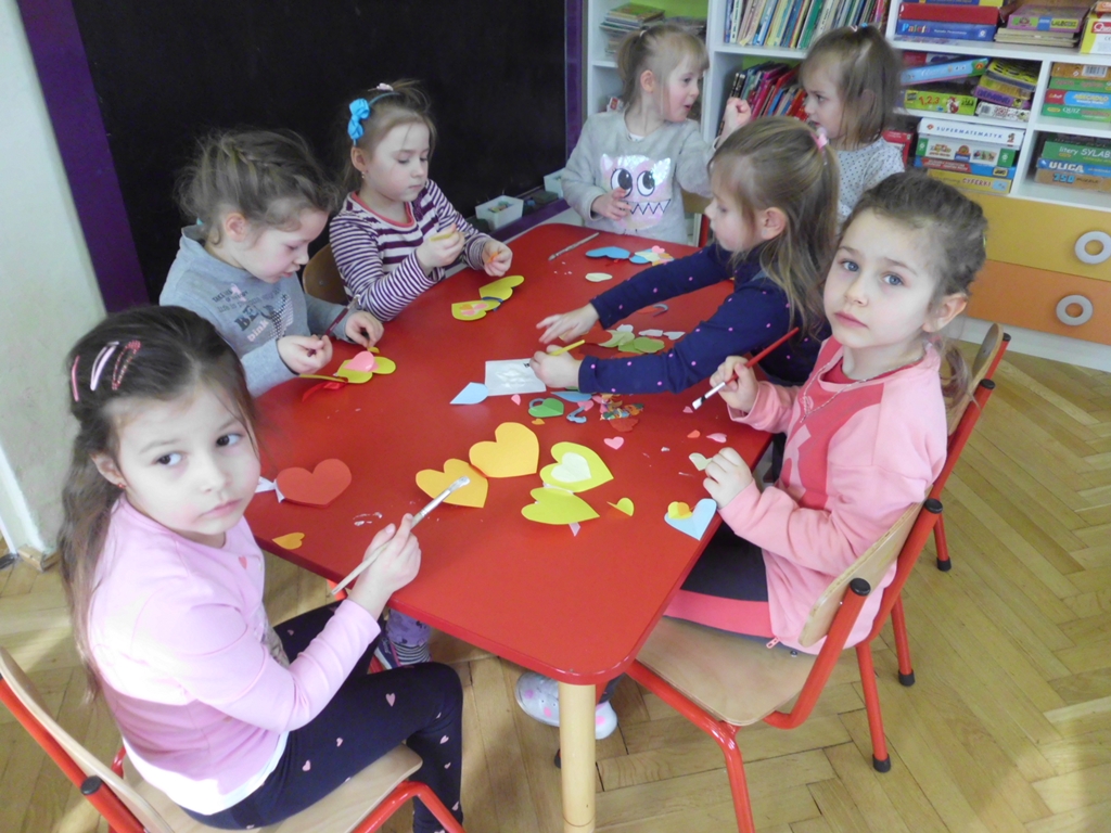 Po części teoretycznej oraz po doświadczeniach z własnego podwórka, dzieci przystąpiły do zabawy, bo przecież bez miłej zabawy nie ma uśmiechu na twarzy… Wspólna krzyżówka, bajkowe puzzle, „serca nie do schrupania” oraz własnoręcznie wykonane kompozycje z kolorowych serduszek spowodowały, że dzieci poczuły się szczęśliwe…