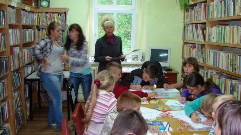 Akcja profilaktyczna „bezpieczny maluch na wsi” zawitała do tutejszej biblioteki 21 września w środę. Mówiono o bezpieczeństwie na drogach, o niebezpieczeństwach na jakie narażone są dzieci na wsi, o bezpieczeństwie pożarowym i medycznym. Na pouczające zajęcia przyjechali także goście z Kłodzkiego Domu Dziecka, Radny Powiatu Kłodzkiego Lubomir Danielczyk i pan Witek z Krosnowic na rowerze. Pokazał, jak wygląda bezpieczny rowerzysta. Dzielnicowy Emil Kowalski mówił o wychowaniu komunikacyjnym, podkreślając grubą krechą zasady ruchu drogowego.