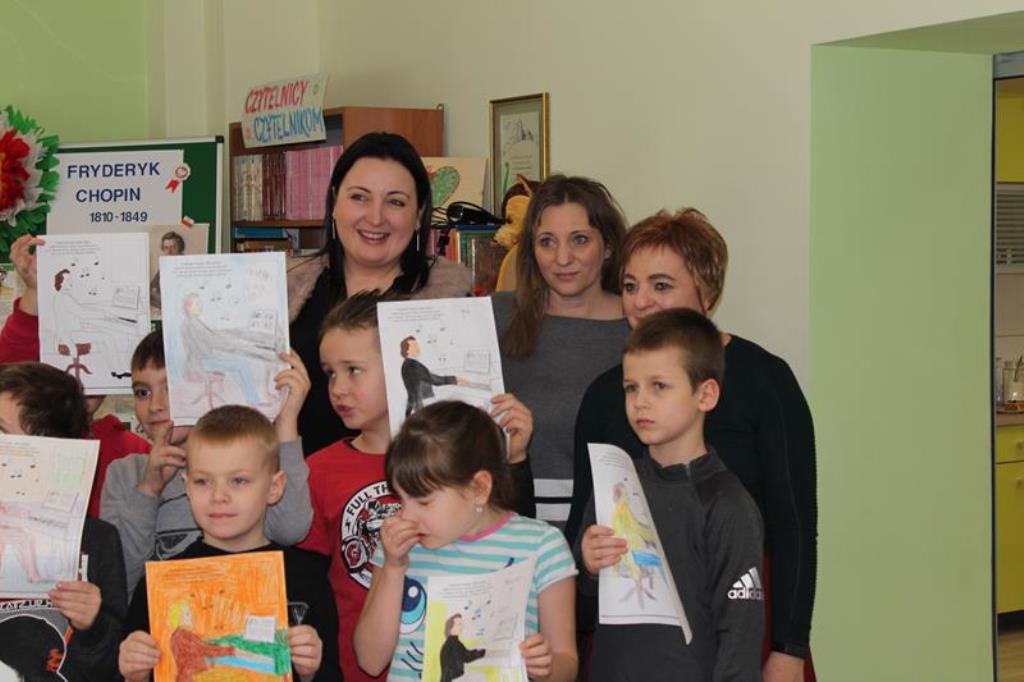 Nasi młodzi czytelnicy, także mieli szansę na pokazanie swoich talentów malarskich. Przystąpili do kolorowania postaci pianisty przy swoim fortepianie. Już od najmłodszych lat Fryderyk wolał grać na fortepianie w ciemności. Stanowiło to dla niego odpowiednią inspirację. Również grając na koncertach prosił o przygaszenie światła w pokoju.