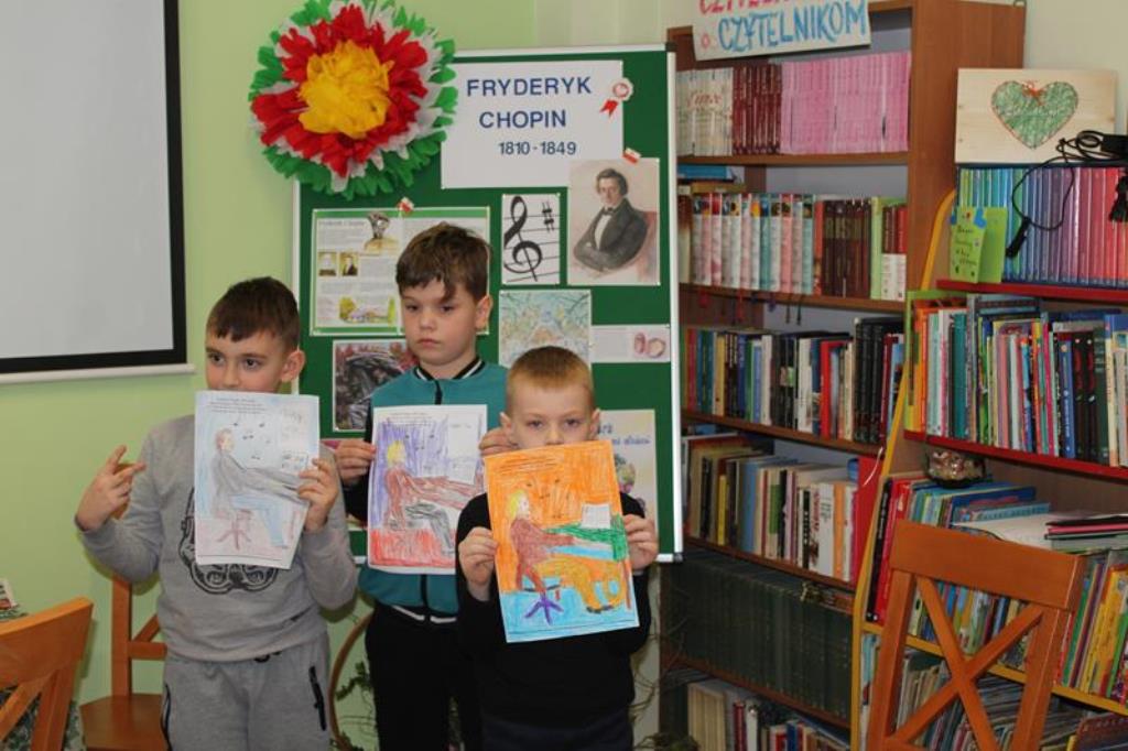 Z okazji 210. Rocznicy urodzin Fryderyka Chopina, Filia nr 1 Biblioteki Publicznej Gminy Kłodzko w Krosnowicach (na początku marca 2020r.) zorganizowała lekcję biblioteczną dla uczniów klas drugich miejscowej Szkoły Podstawowej.